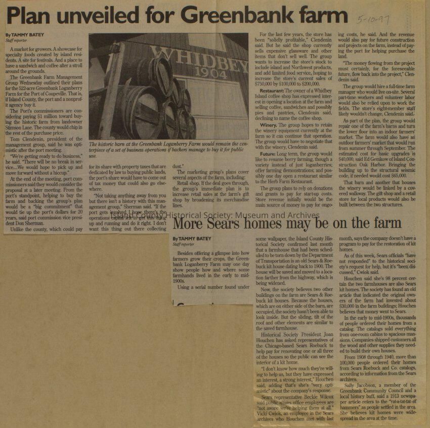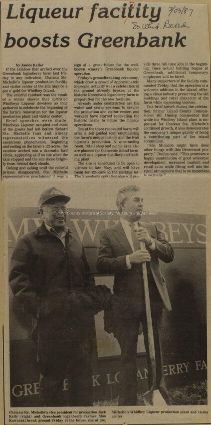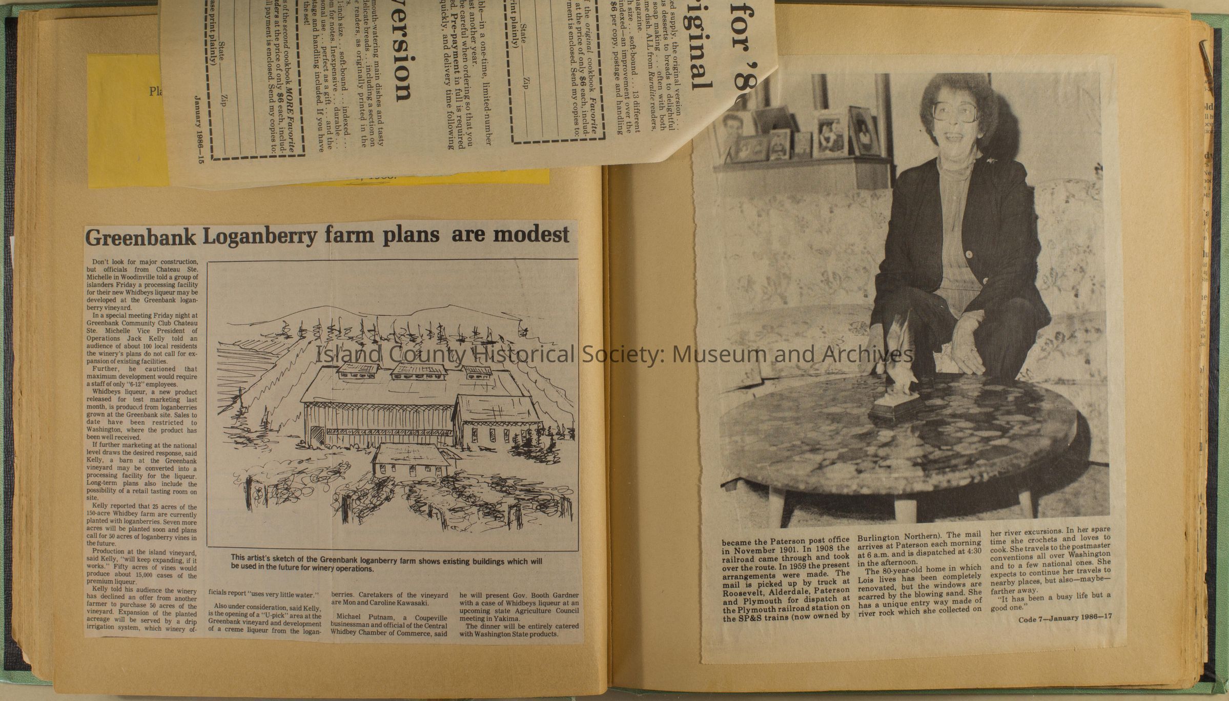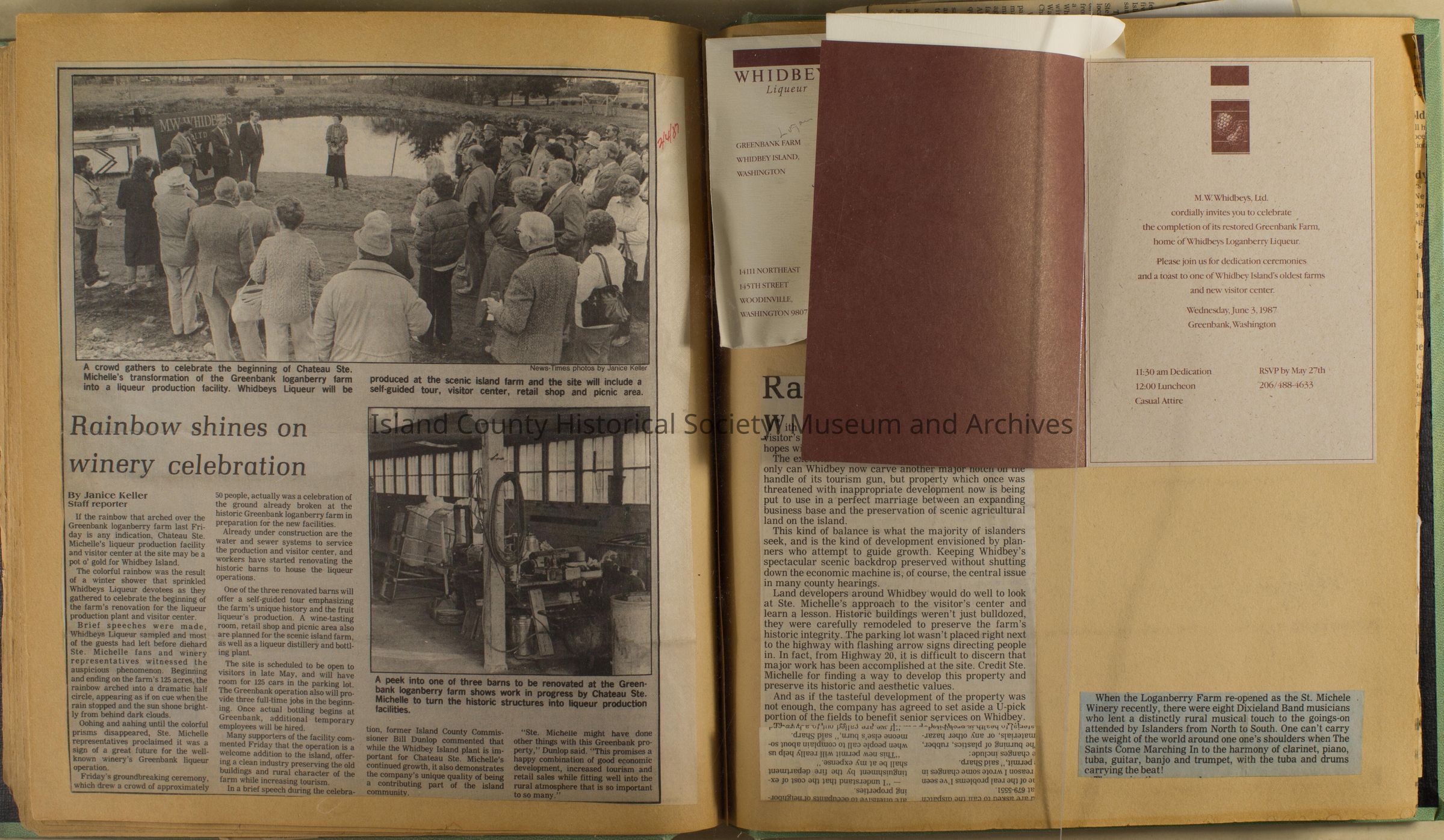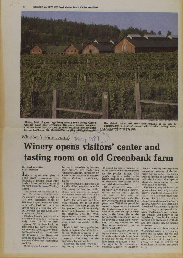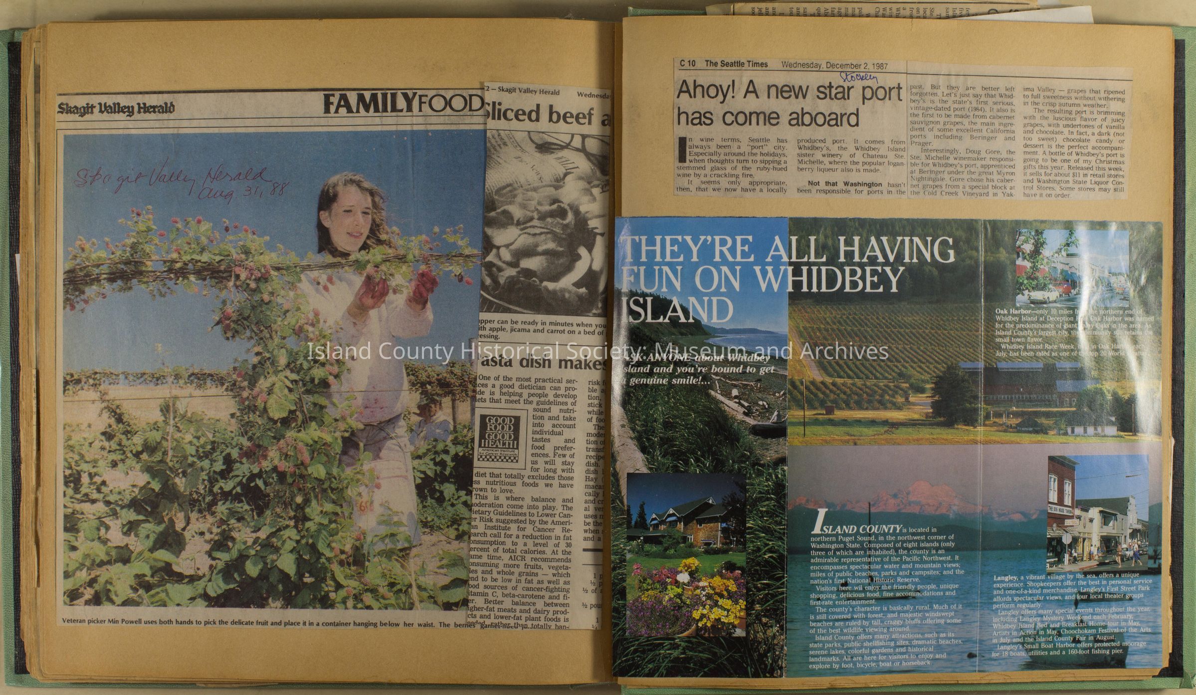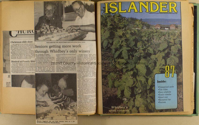 Greenbank scrapbook, photos, newspaper clippings concerning Greenbank farm and Greenbank. Digital copy only of scrapbook donated by Margaret Kawasaki and parents Mun and Carolyne who managed the Farm during the 70s and 80's as a Loganberry farm.