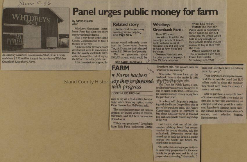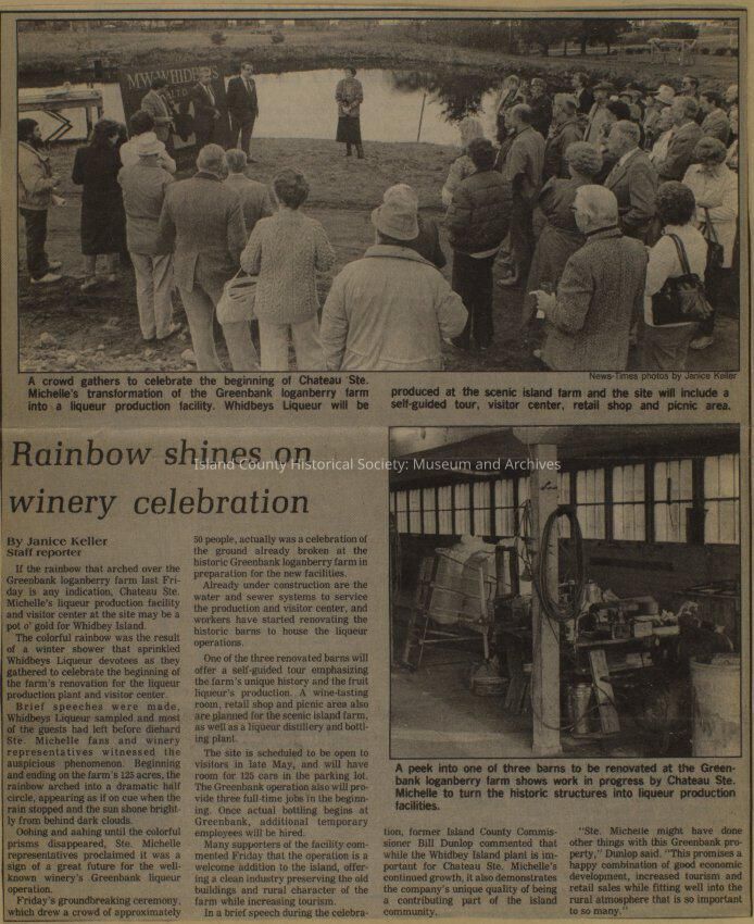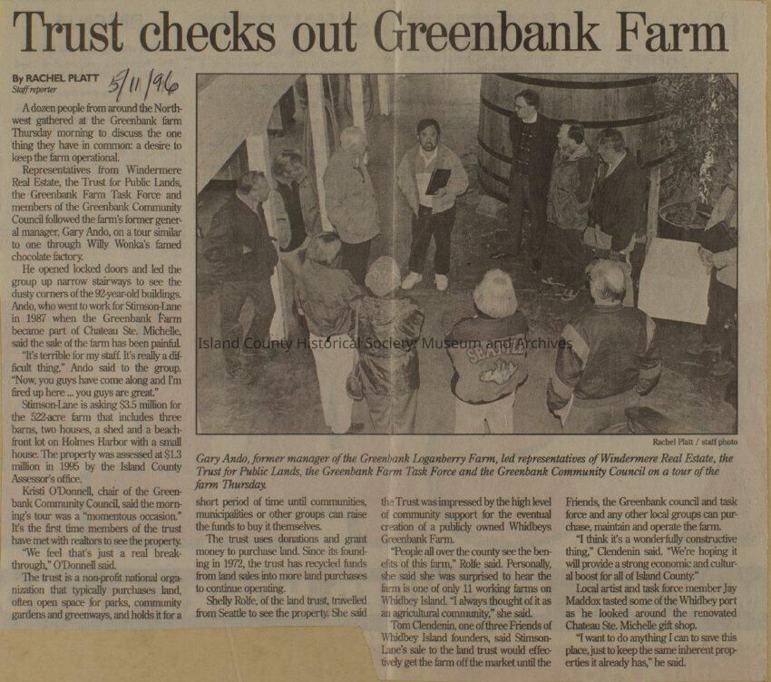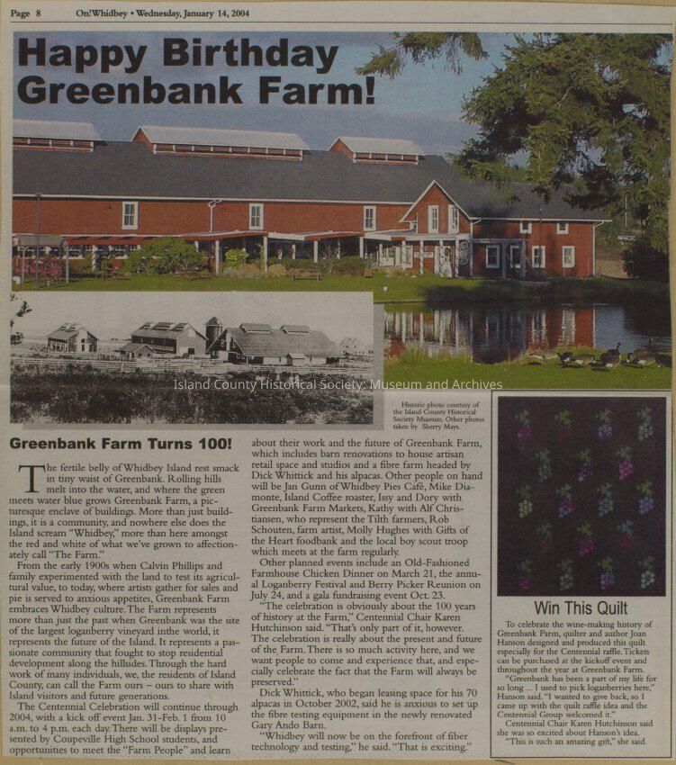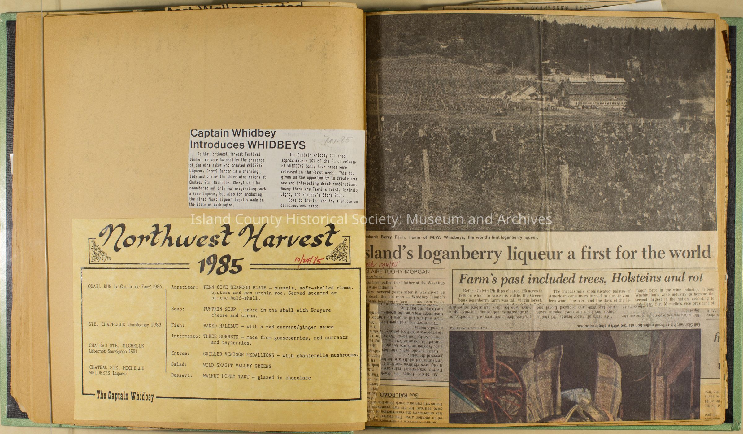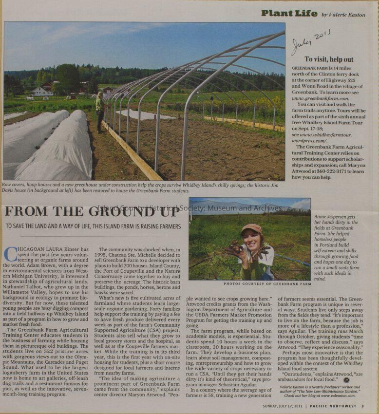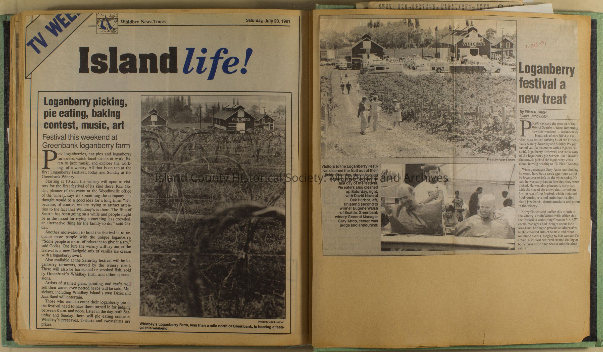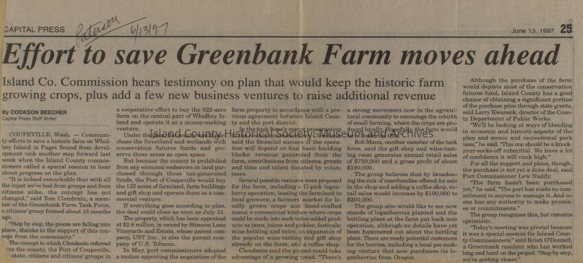 Greenbank scrapbook, photos, newspaper clippings concerning Greenbank farm and Greenbank. Digital copy only of scrapbook donated by Margaret Kawasaki and parents Mun and Carolyne who managed the Farm during the 70s and 80's as a Loganberry farm.