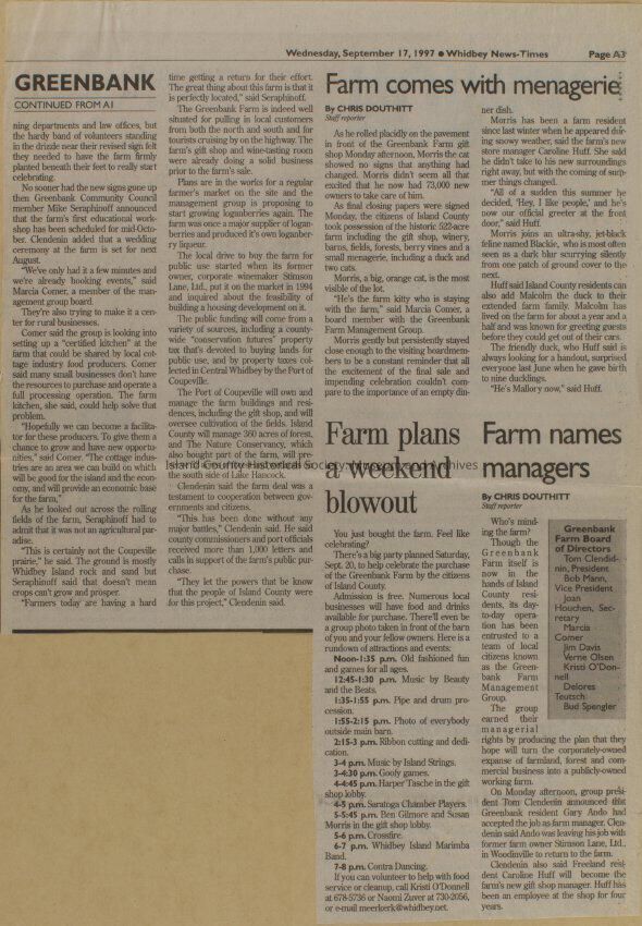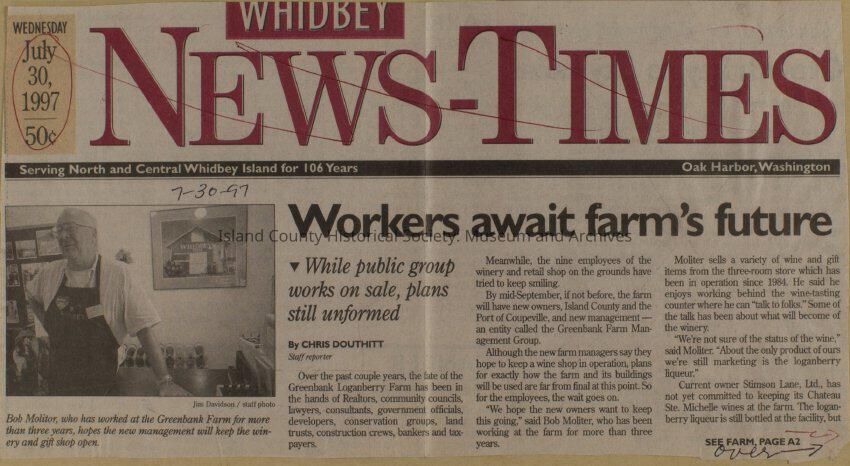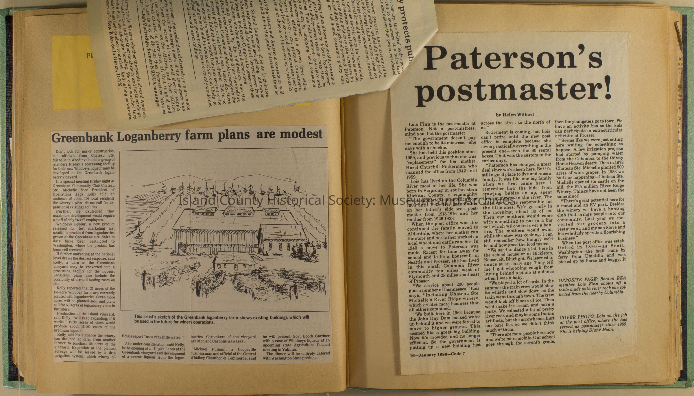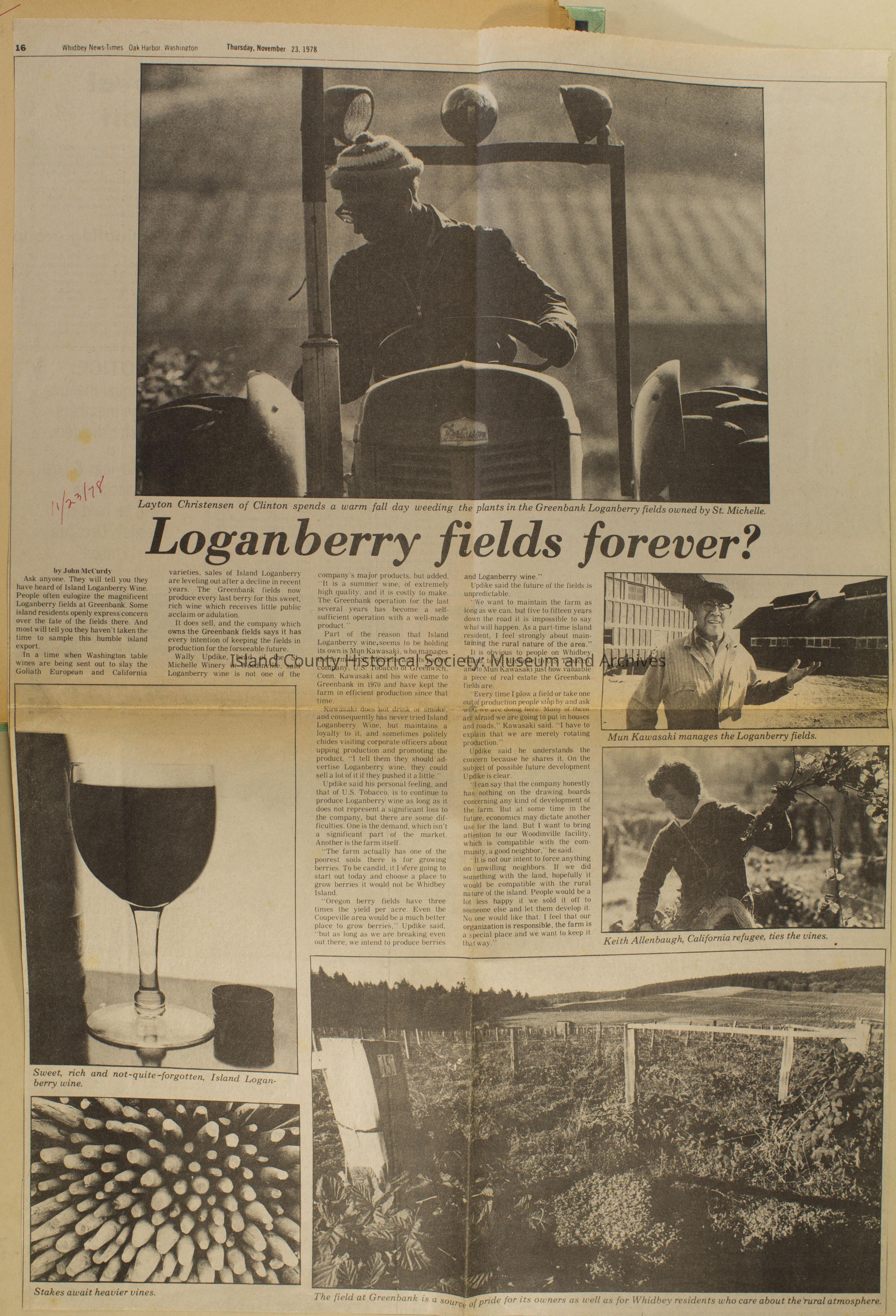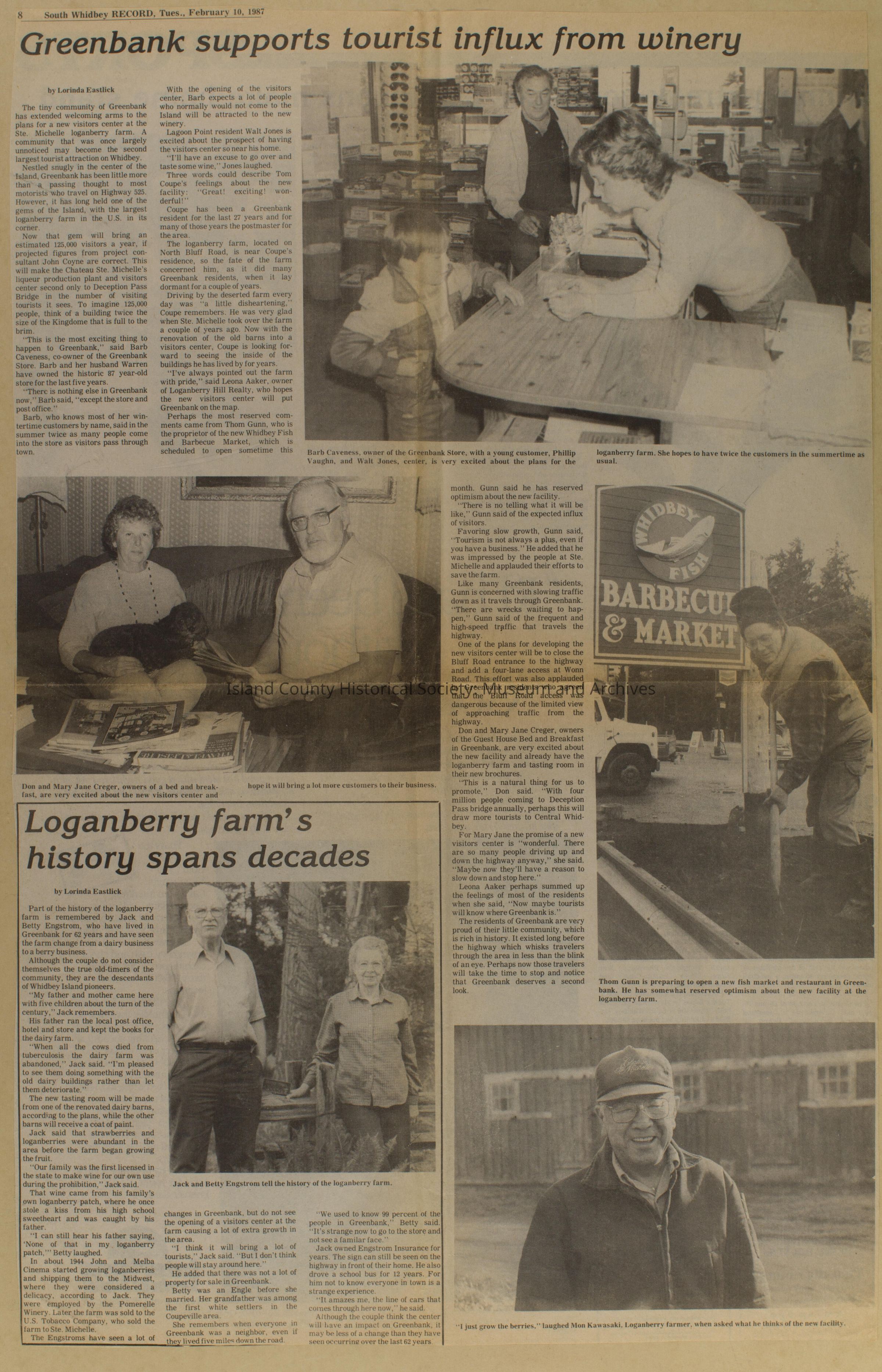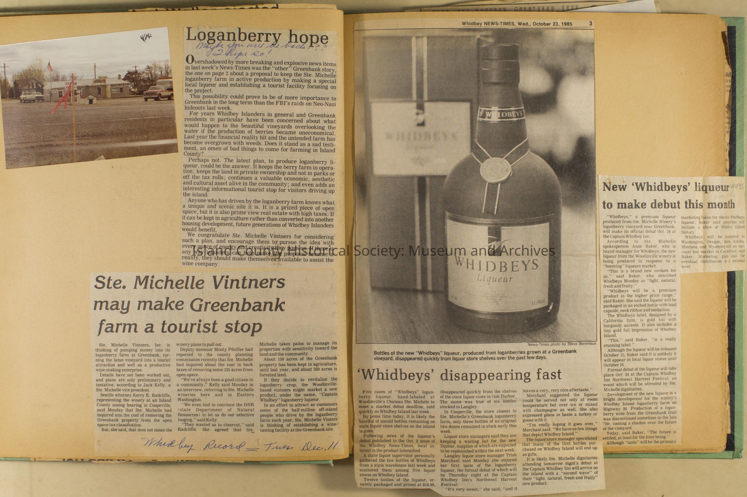 Greenbank scrapbook, photos, newspaper clippings concerning Greenbank farm and Greenbank. Digital copy only of scrapbook donated by Margaret Kawasaki and parents Mun and Carolyne who managed the Farm during the 70s and 80's as a Loganberry farm.
