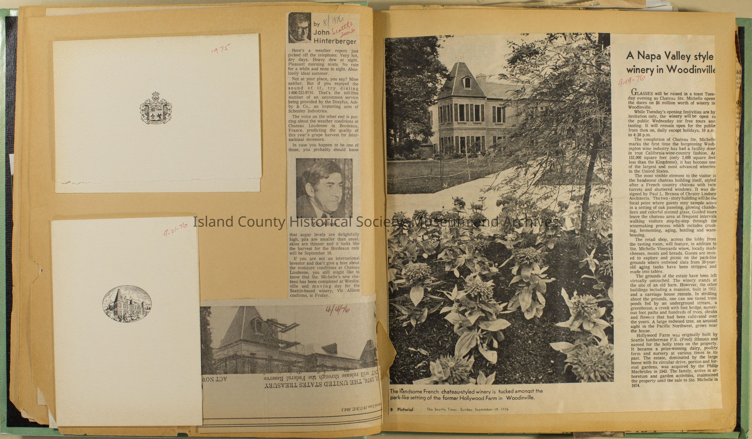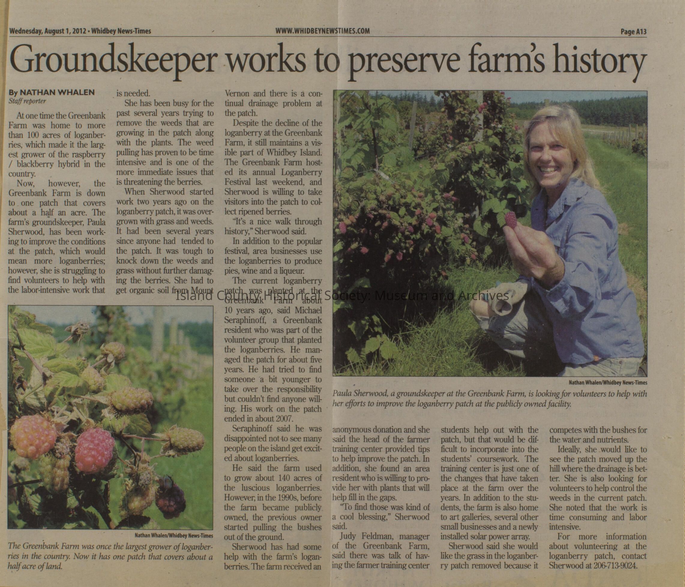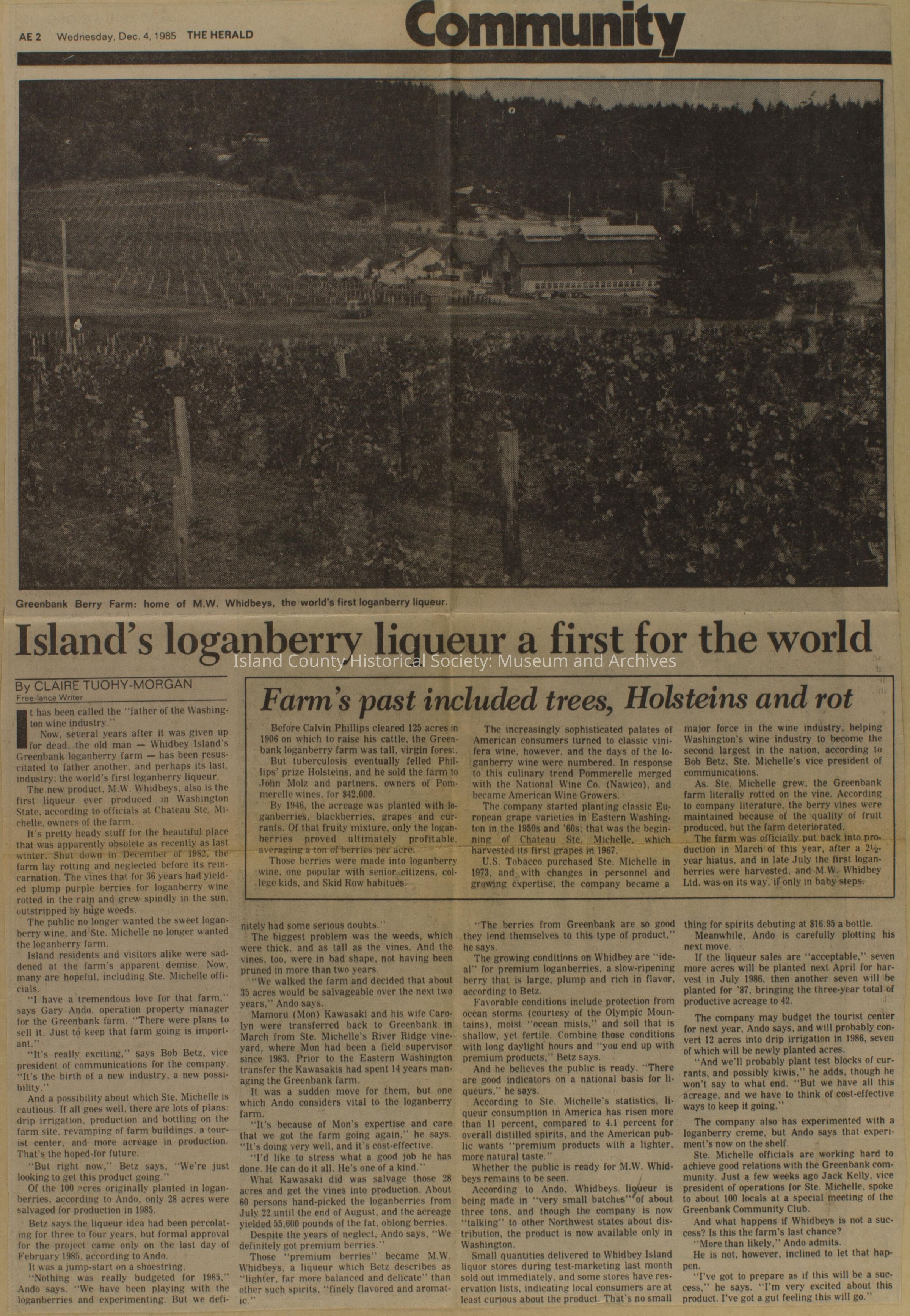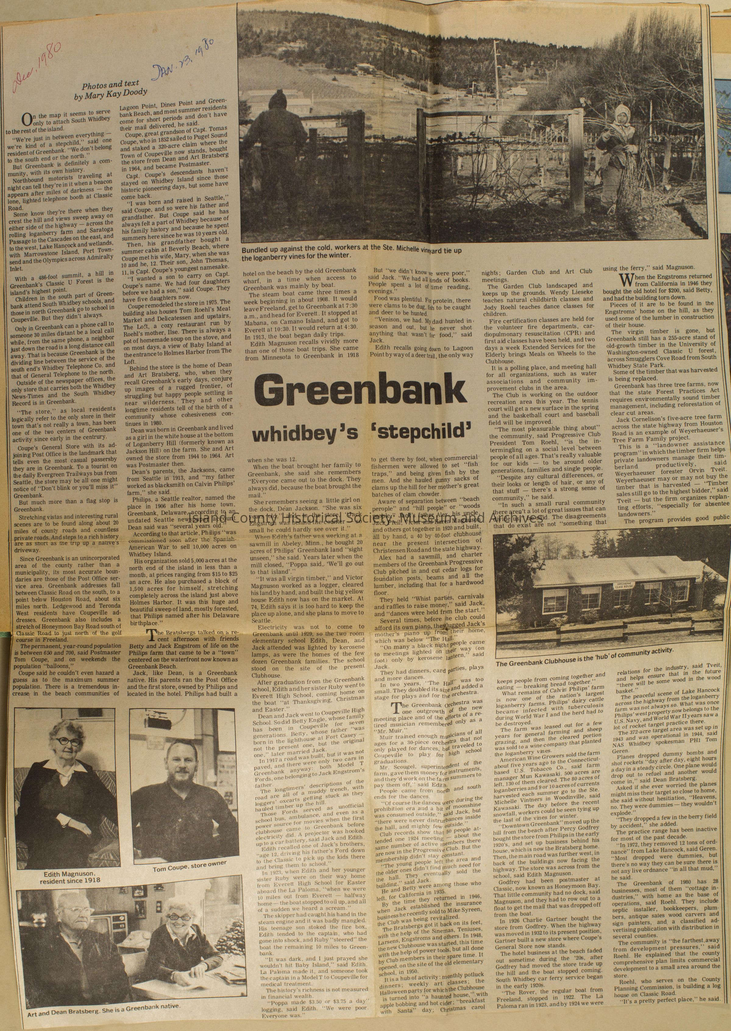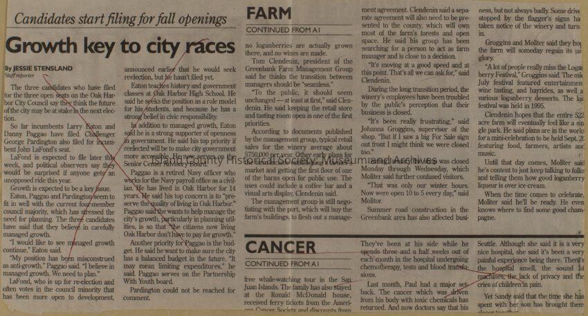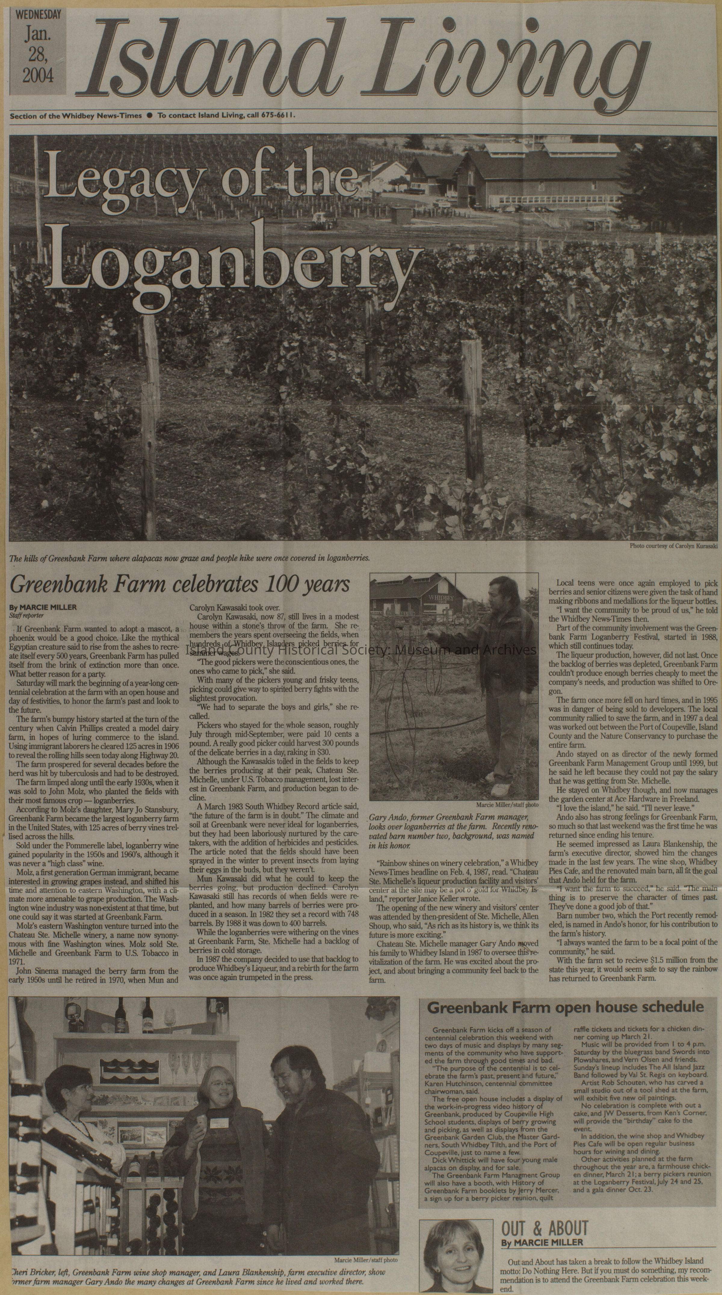 Greenbank scrapbook, photos, newspaper clippings concerning Greenbank farm and Greenbank. Digital copy only of scrapbook donated by Margaret Kawasaki and parents Mun and Carolyne who managed the Farm during the 70s and 80's as a Loganberry farm.