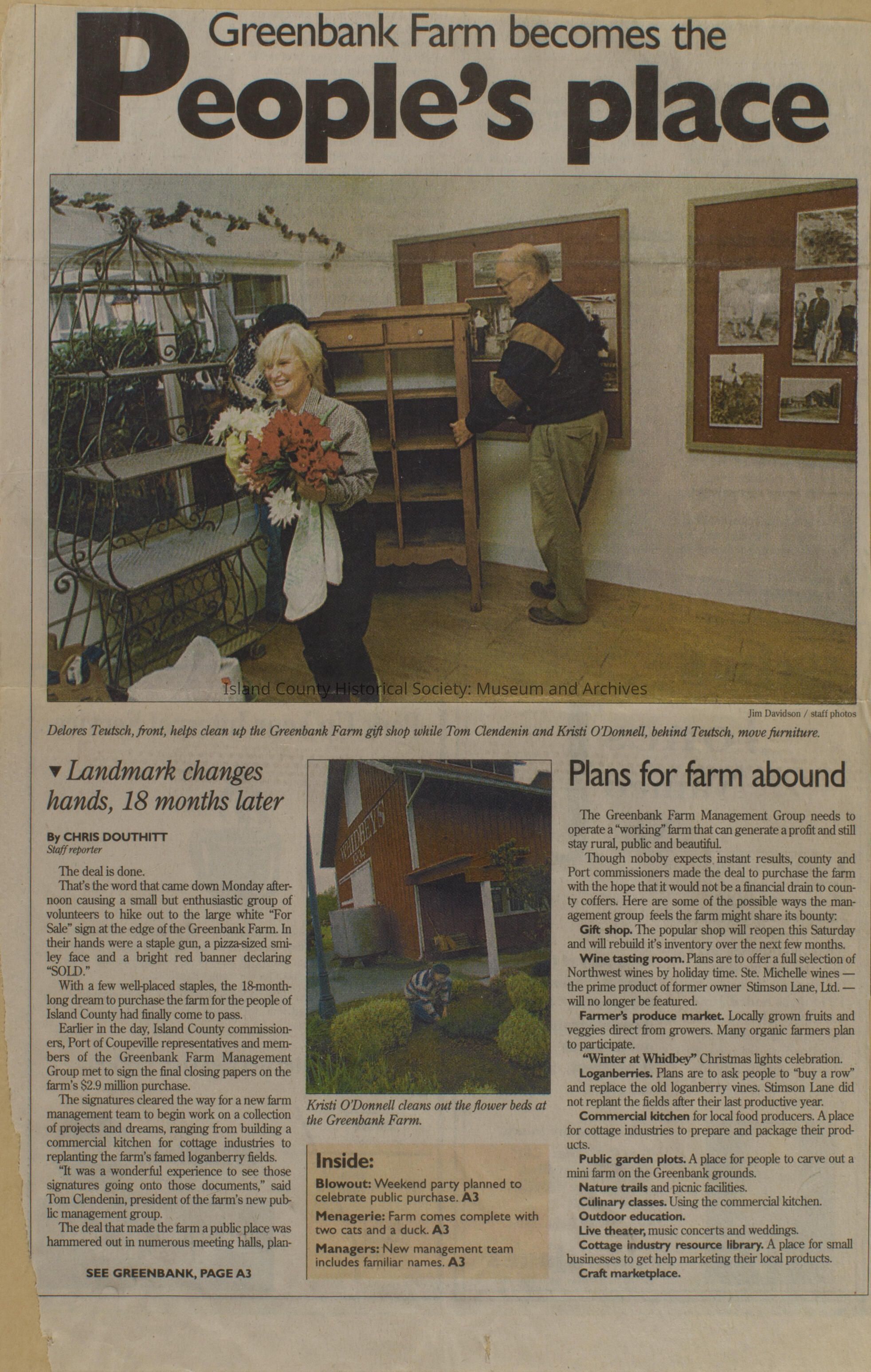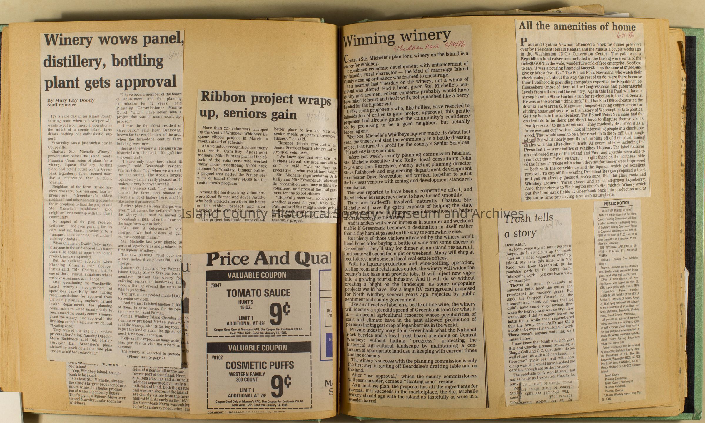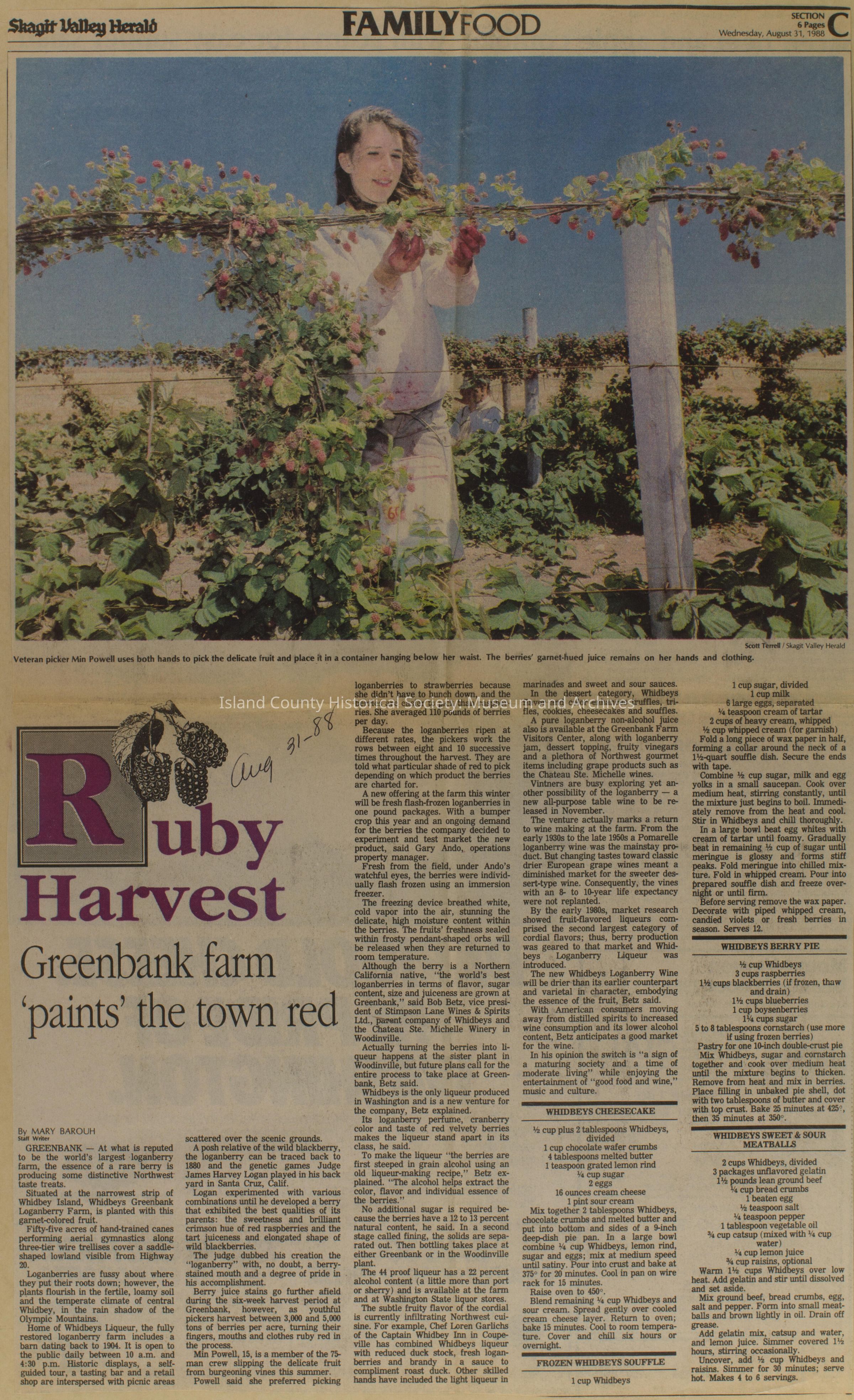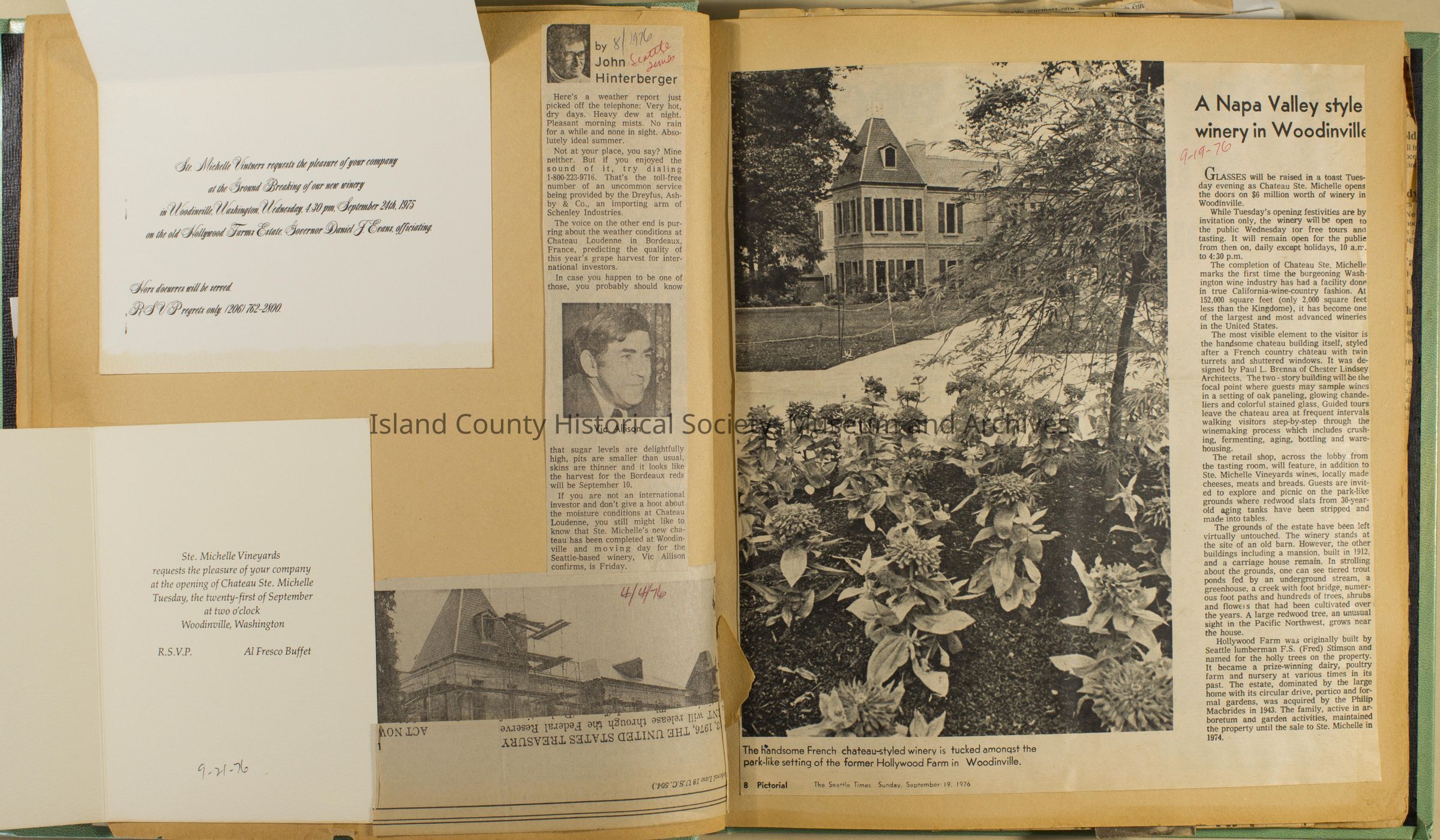 Greenbank scrapbook, photos, newspaper clippings concerning Greenbank farm and Greenbank. Digital copy only of scrapbook donated by Margaret Kawasaki and parents Mun and Carolyne who managed the Farm during the 70s and 80's as a Loganberry farm.