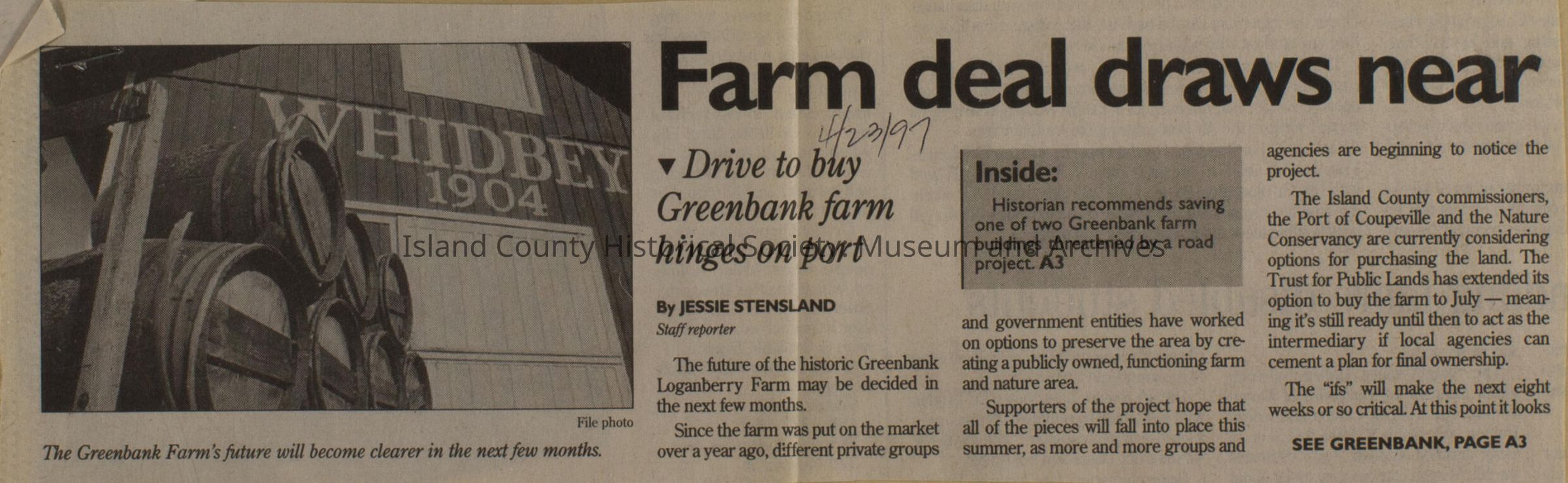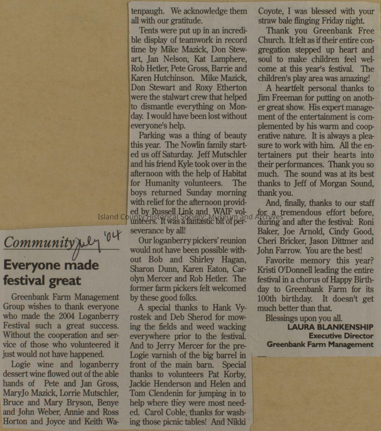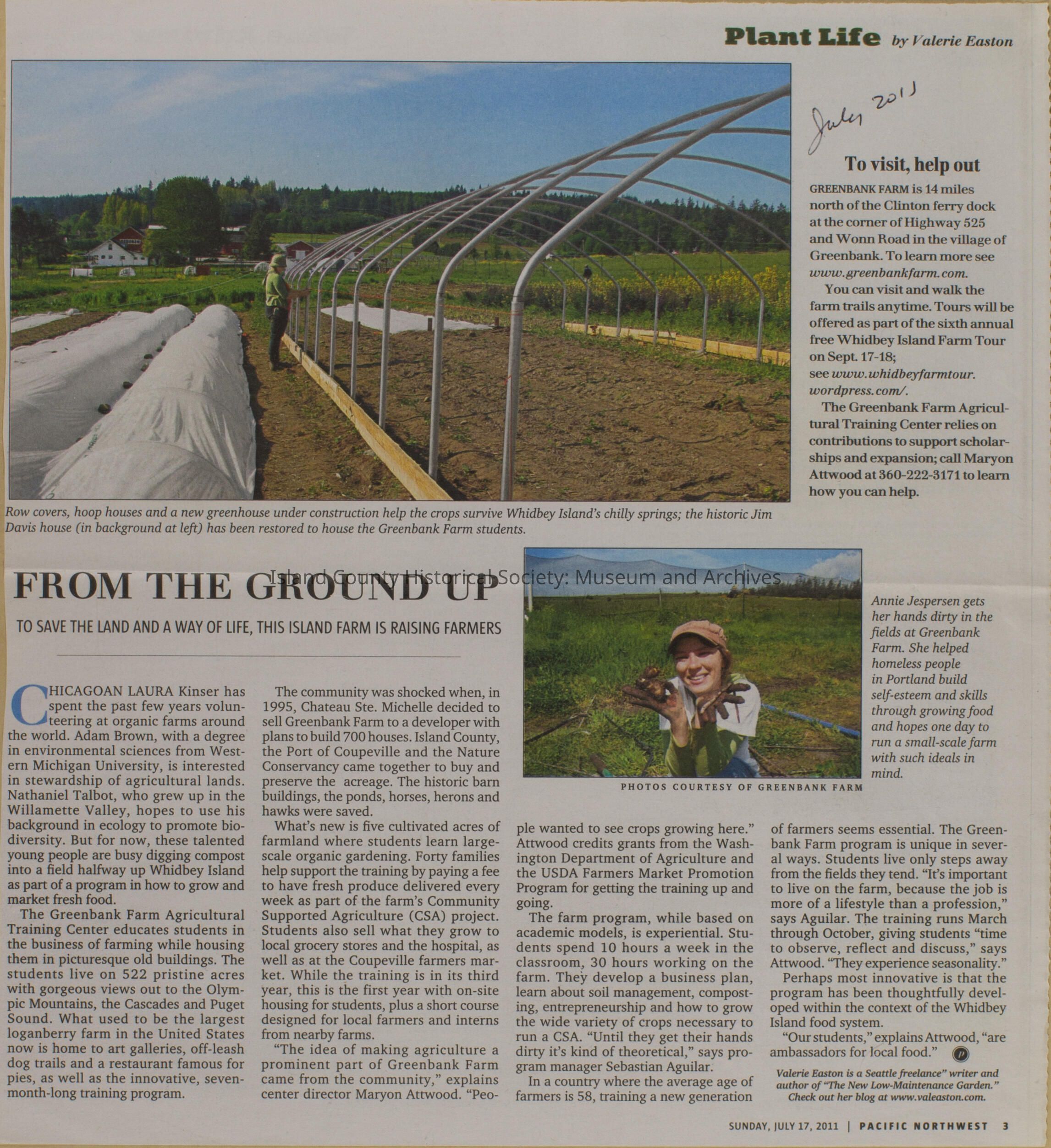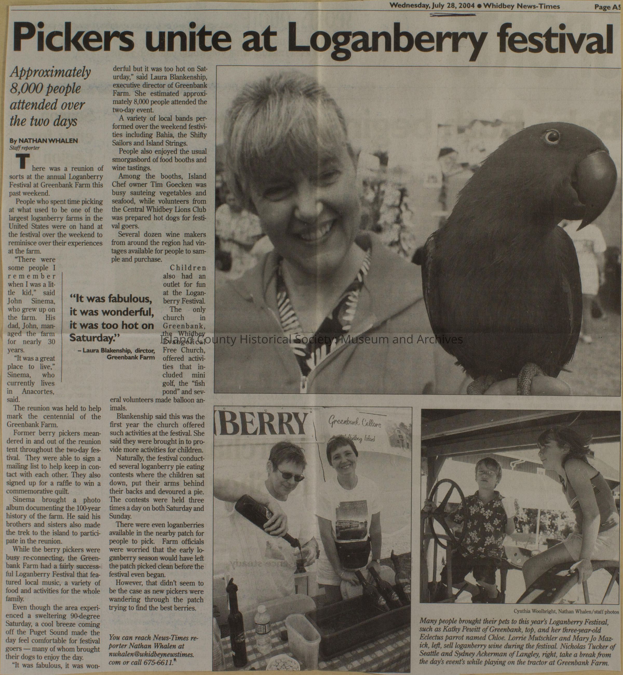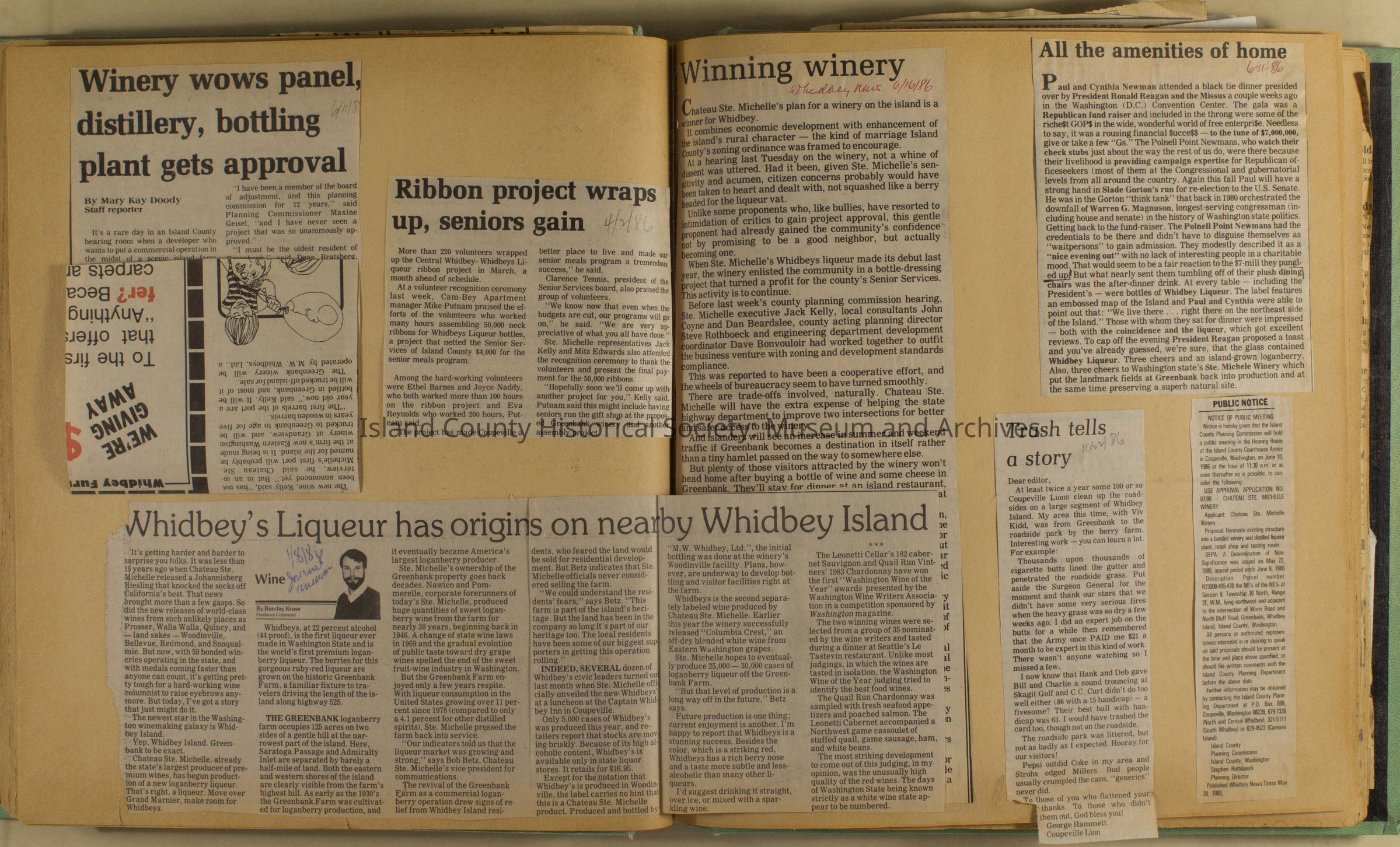 Greenbank scrapbook, photos, newspaper clippings concerning Greenbank farm and Greenbank. Digital copy only of scrapbook donated by Margaret Kawasaki and parents Mun and Carolyne who managed the Farm during the 70s and 80's as a Loganberry farm.