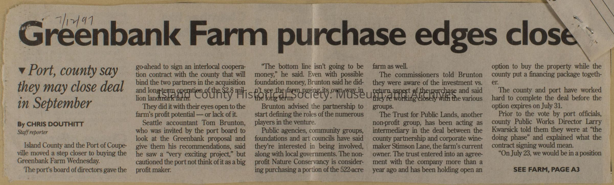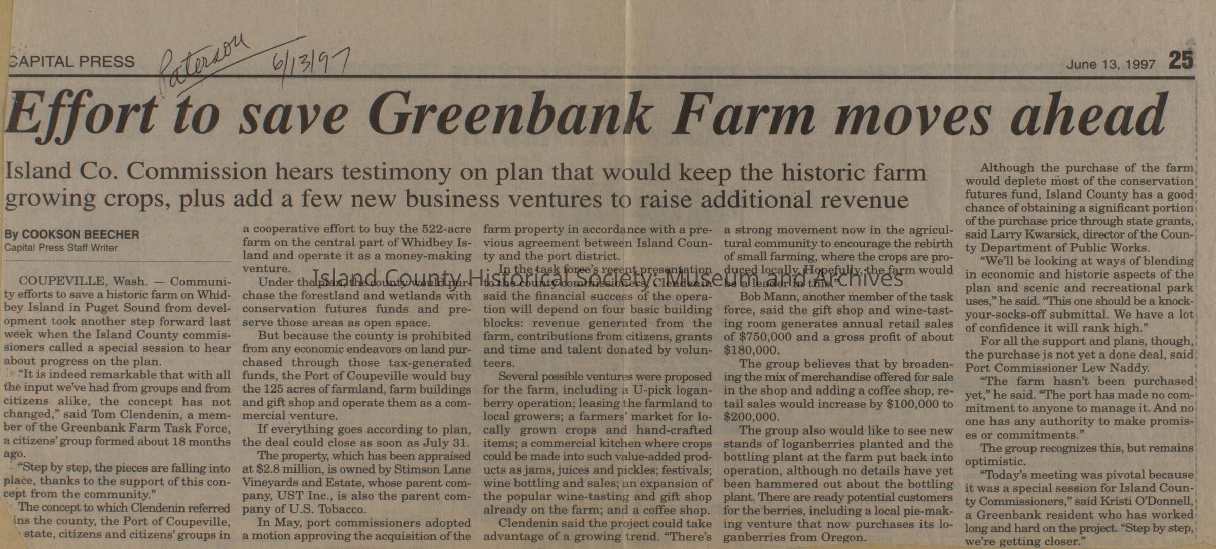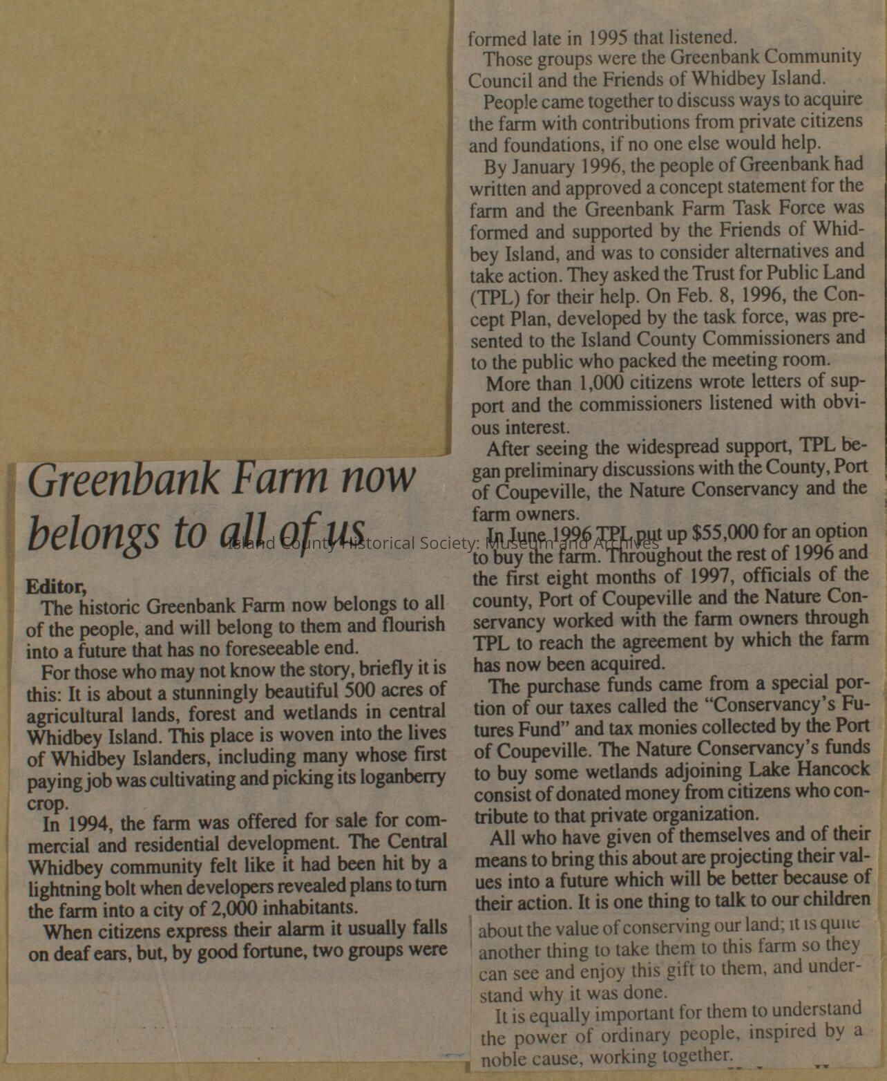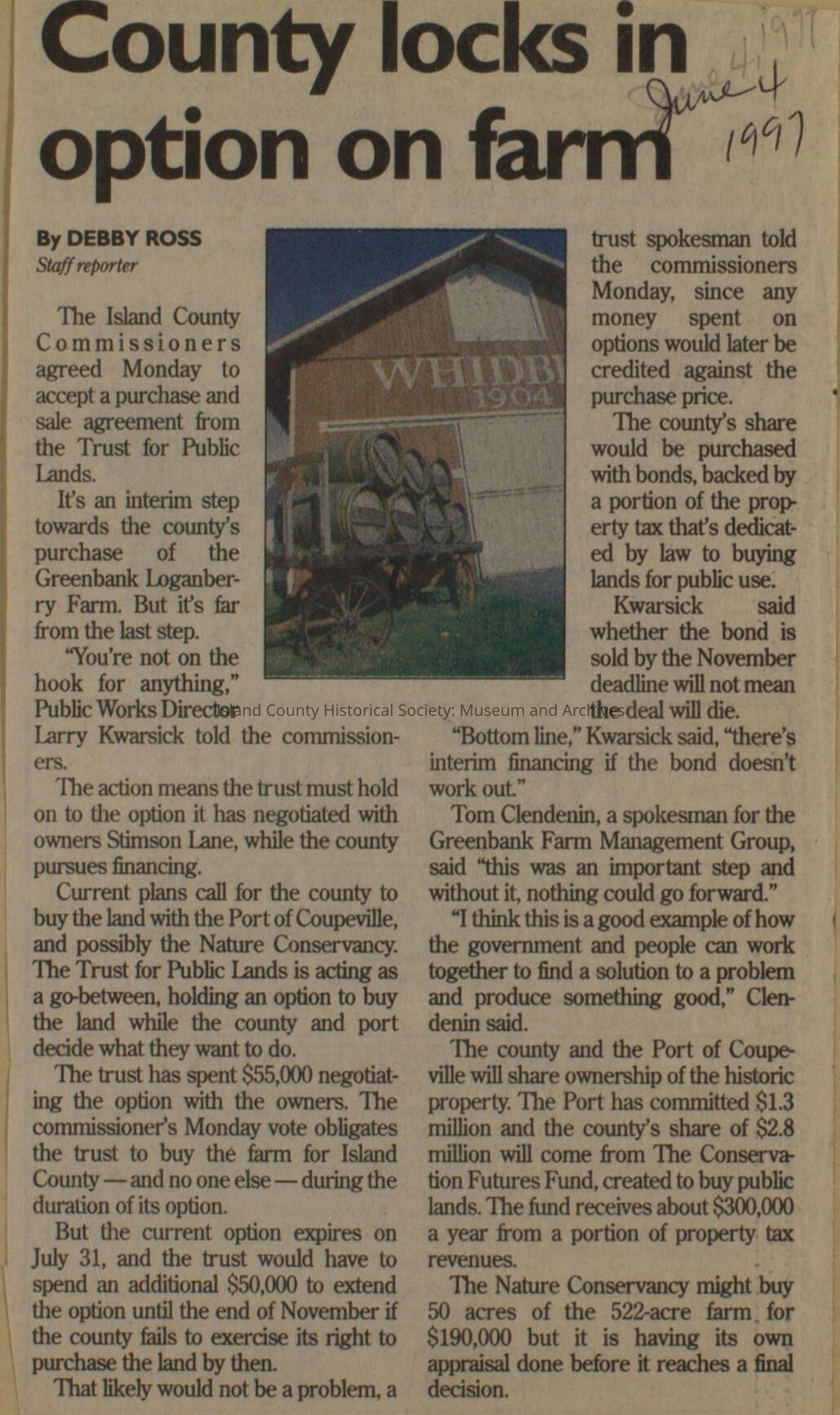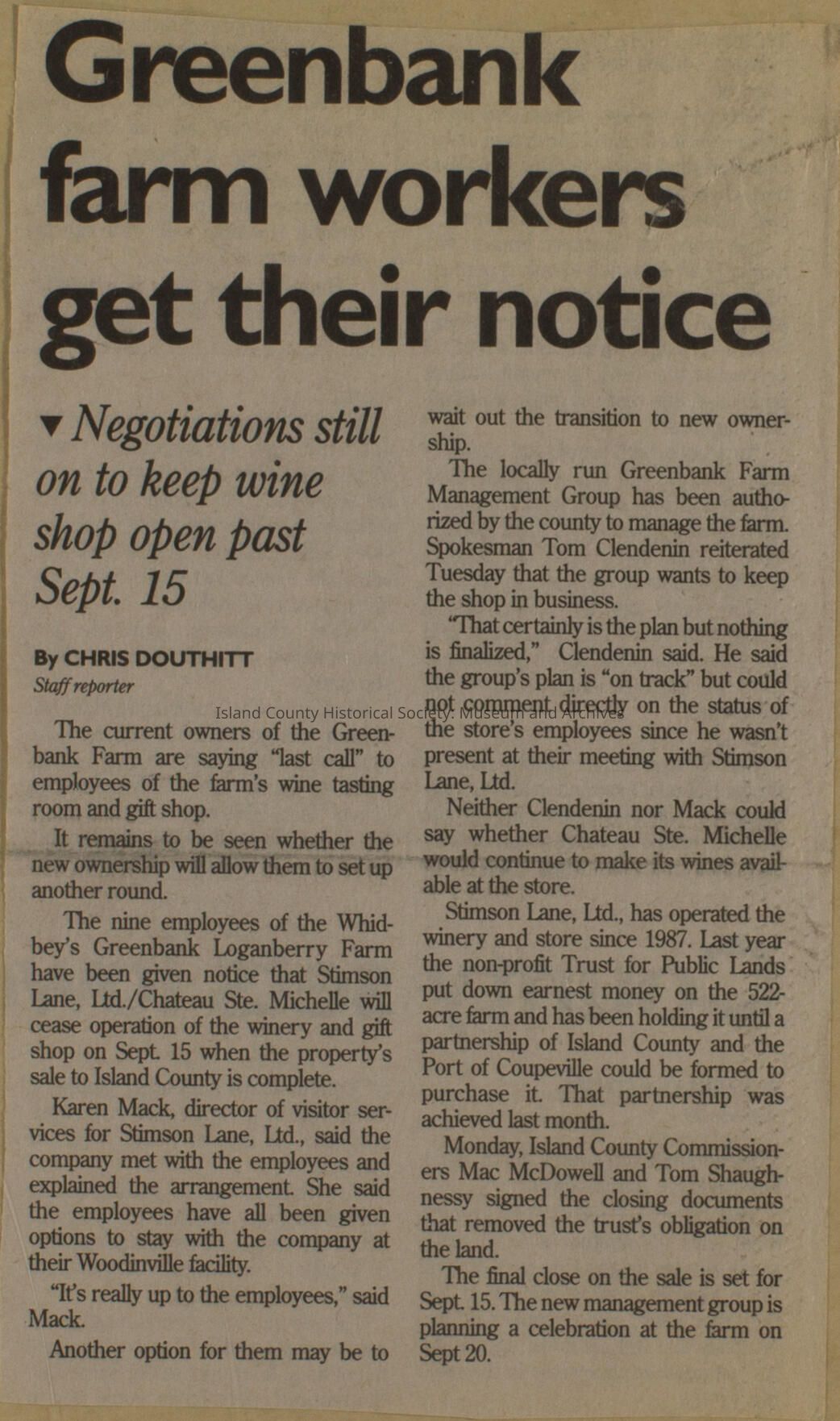 Greenbank scrapbook, photos, newspaper clippings concerning Greenbank farm and Greenbank. Digital copy only of scrapbook donated by Margaret Kawasaki and parents Mun and Carolyne who managed the Farm during the 70s and 80's as a Loganberry farm.
