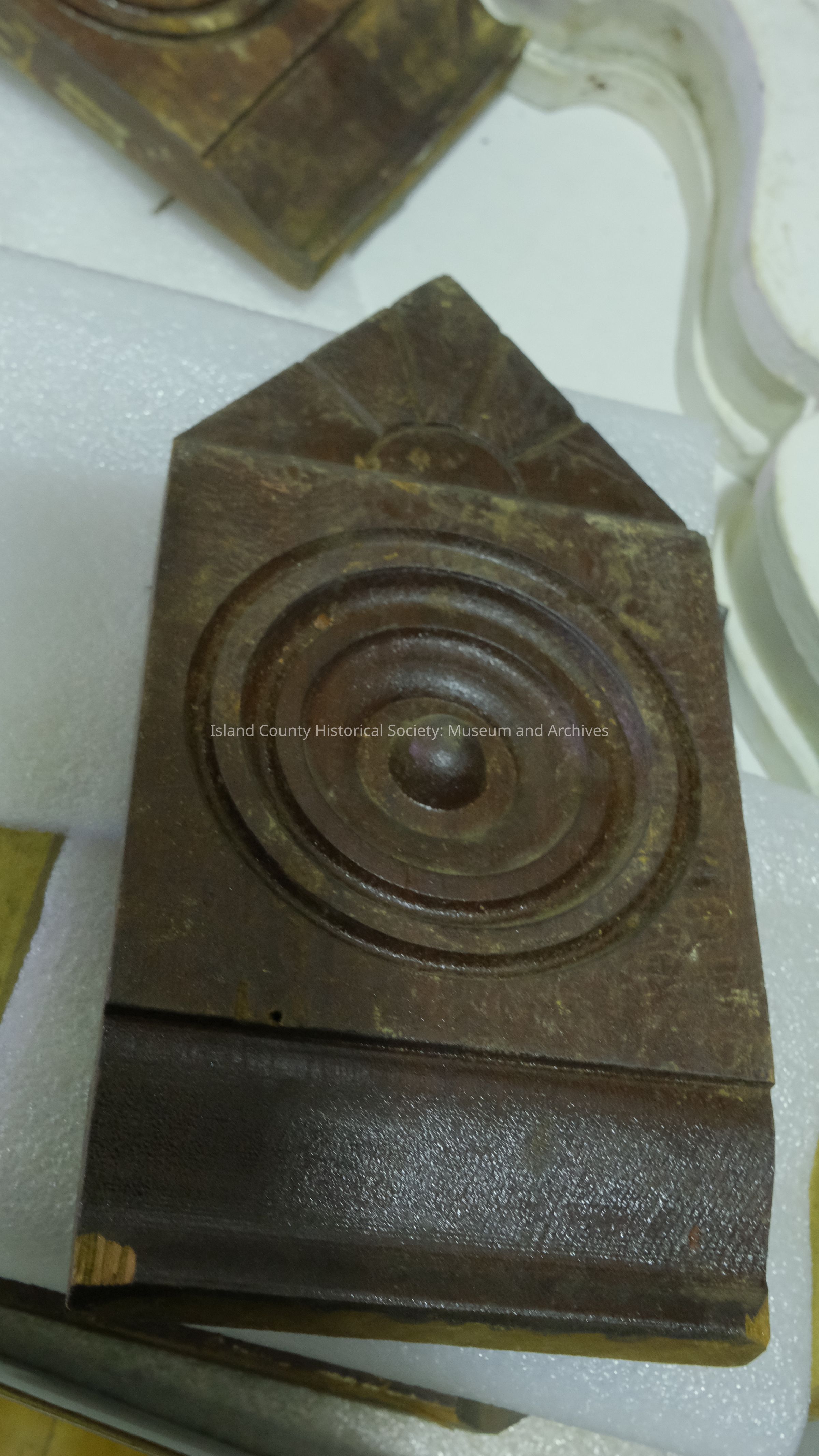 Remnant carvings from old courthouse that stood at 3rd & Haller.