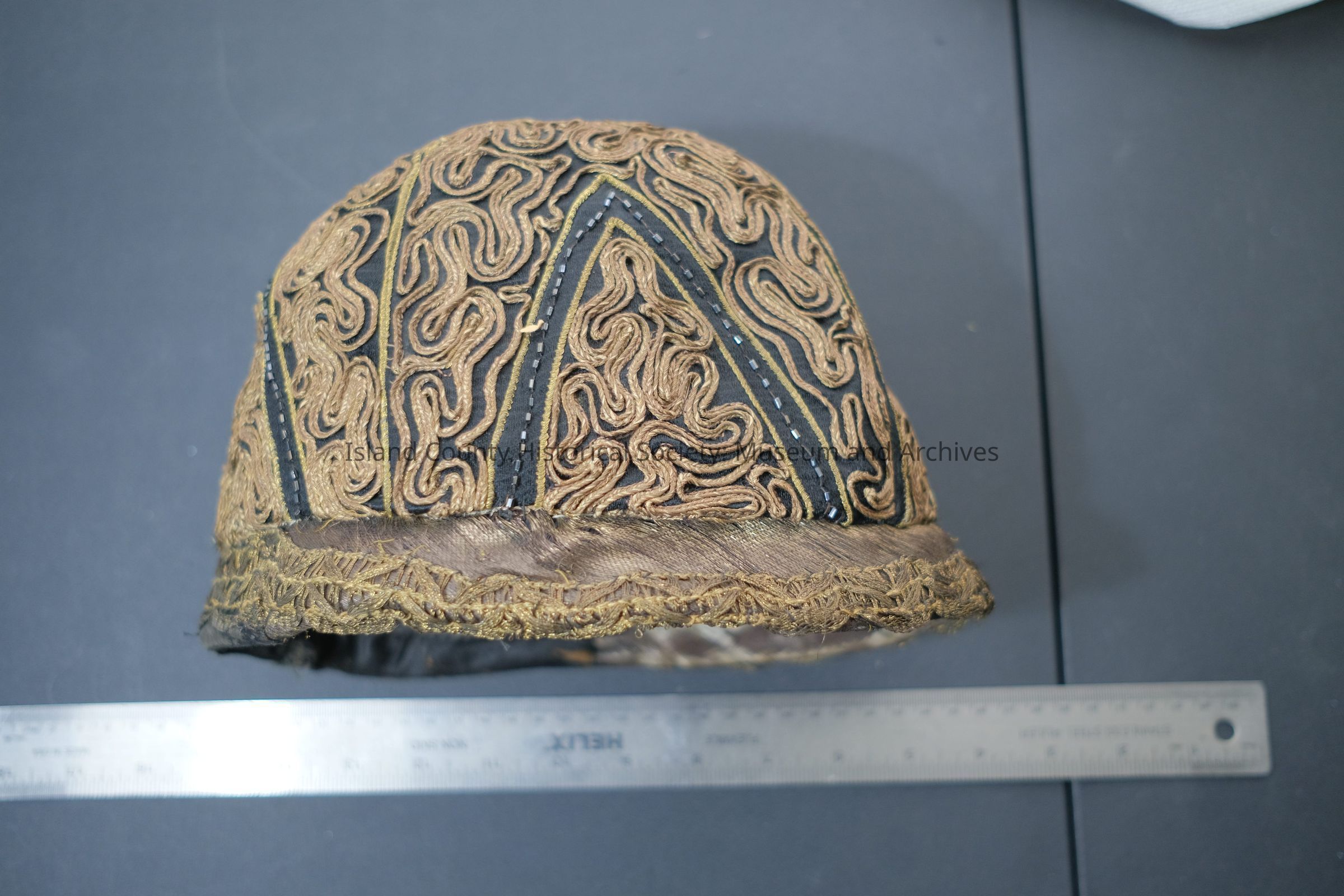 black cloche w/ gold braid detail/jet beads