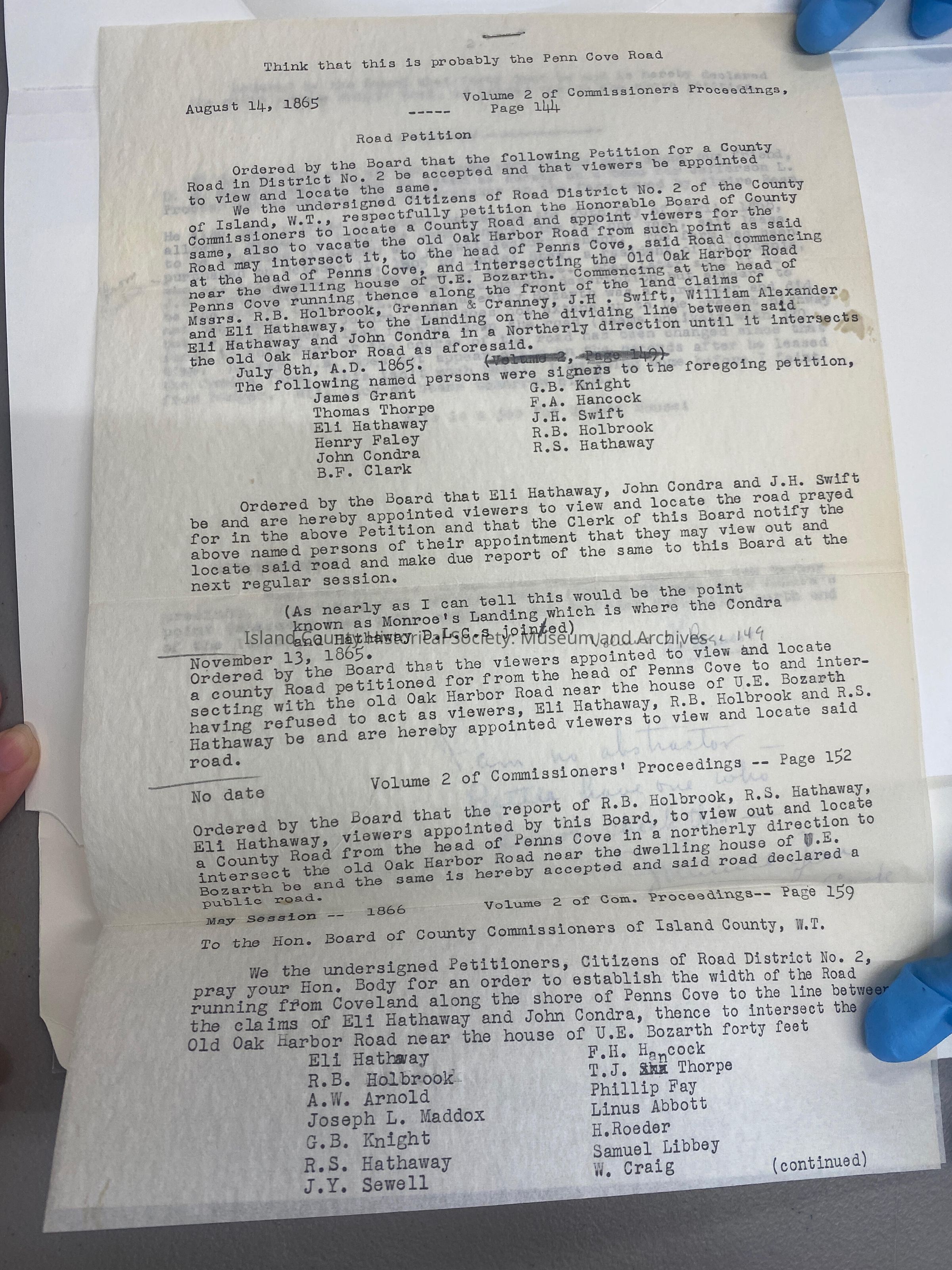 Road Petition August 14 1865