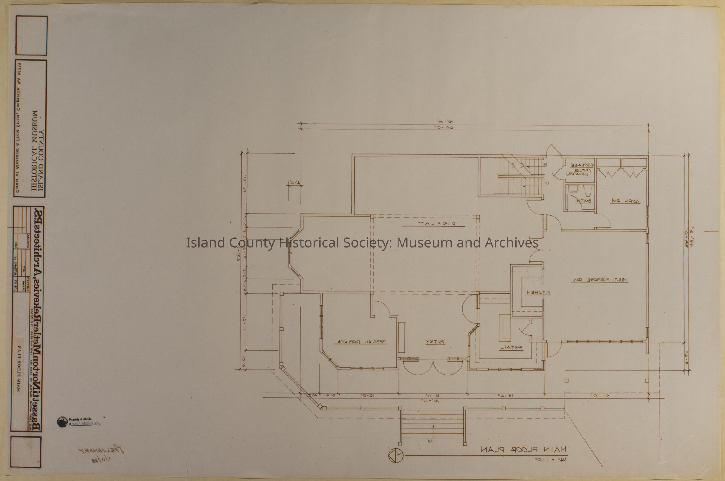 Architect Drawings of Island County Museum Building -1988 Main Floor plan - 3 of 4