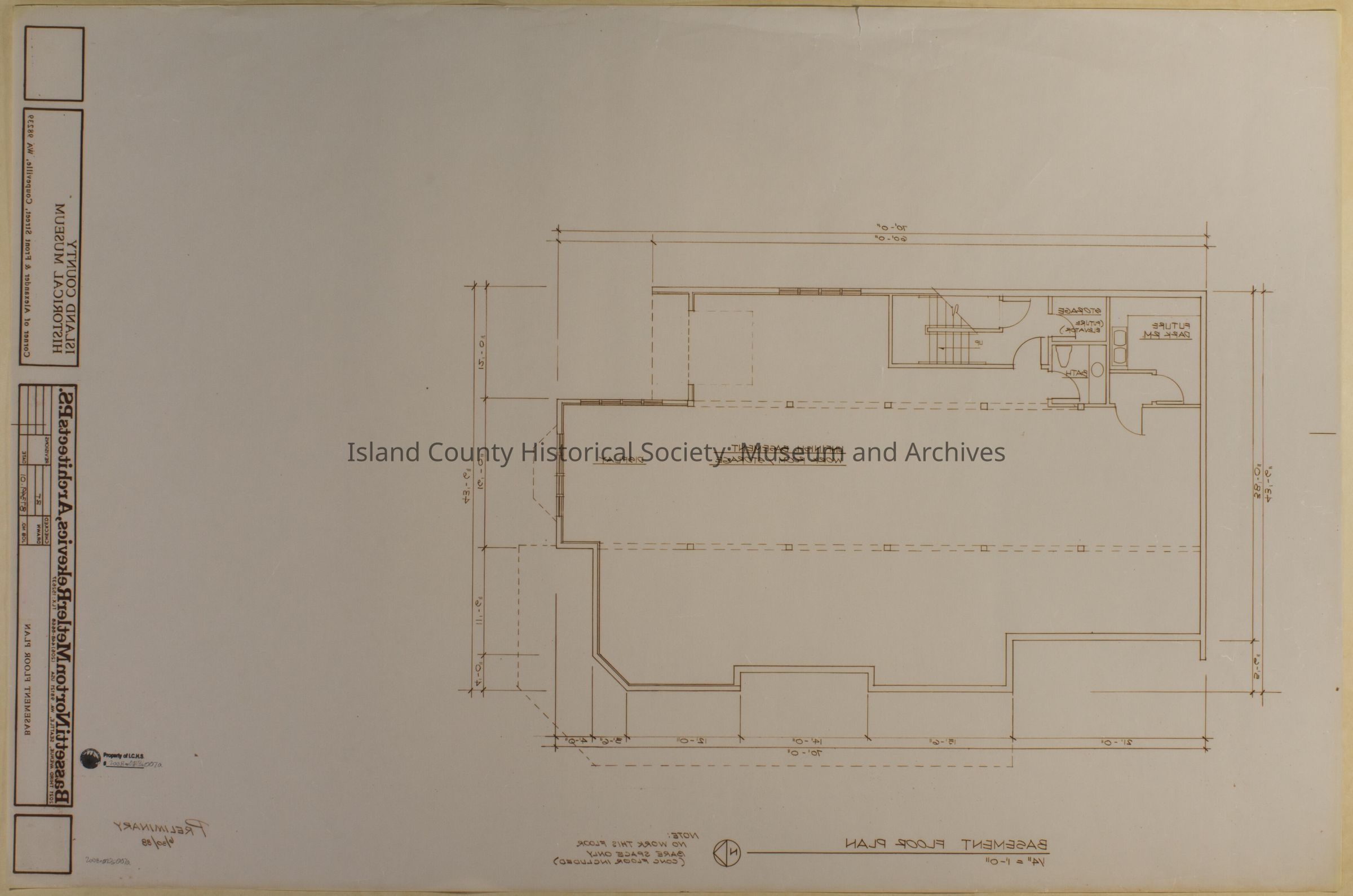 Architect Drawings of Island County Museum Building -1988 Basement Floor plan - 2 of 3