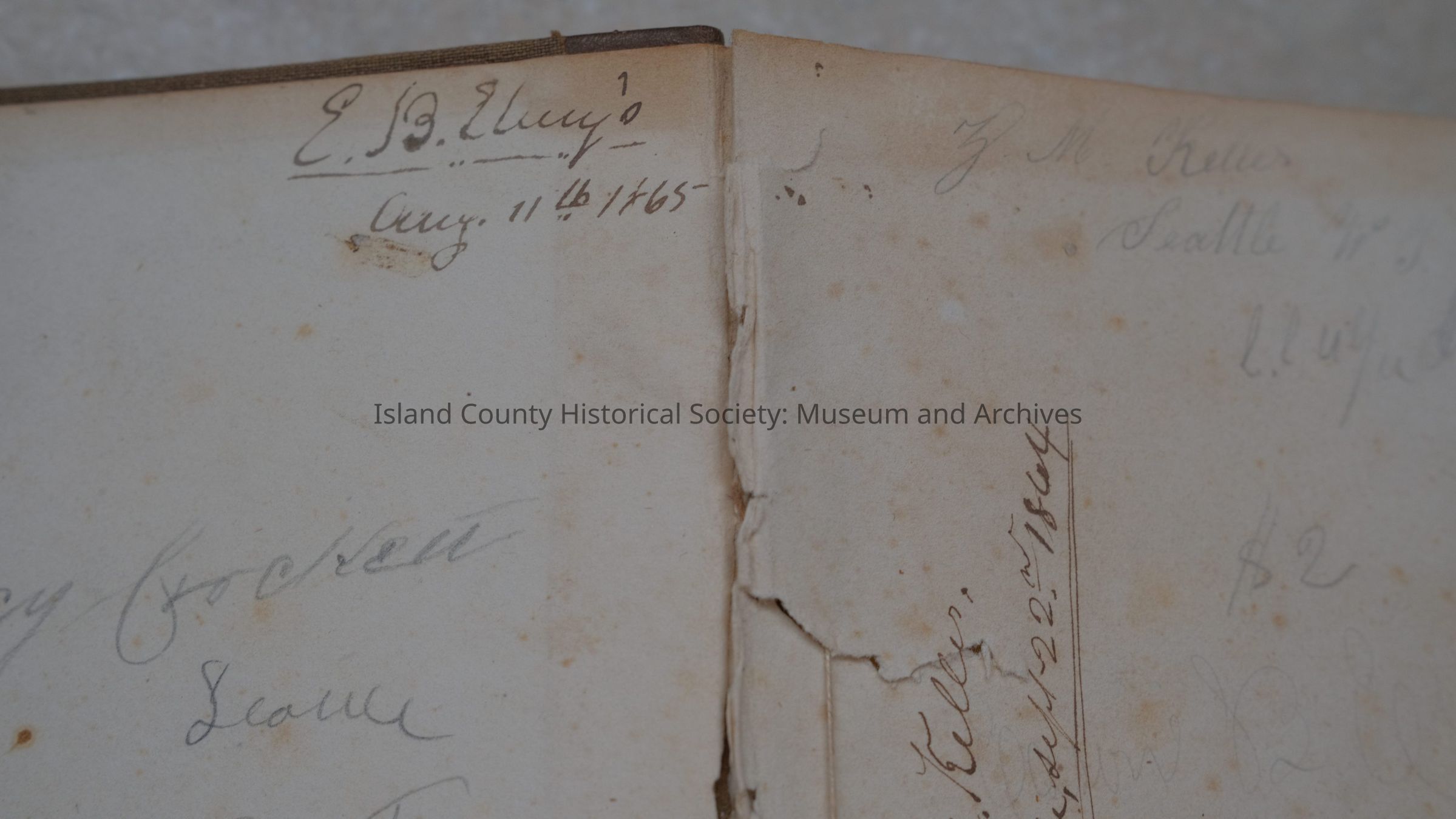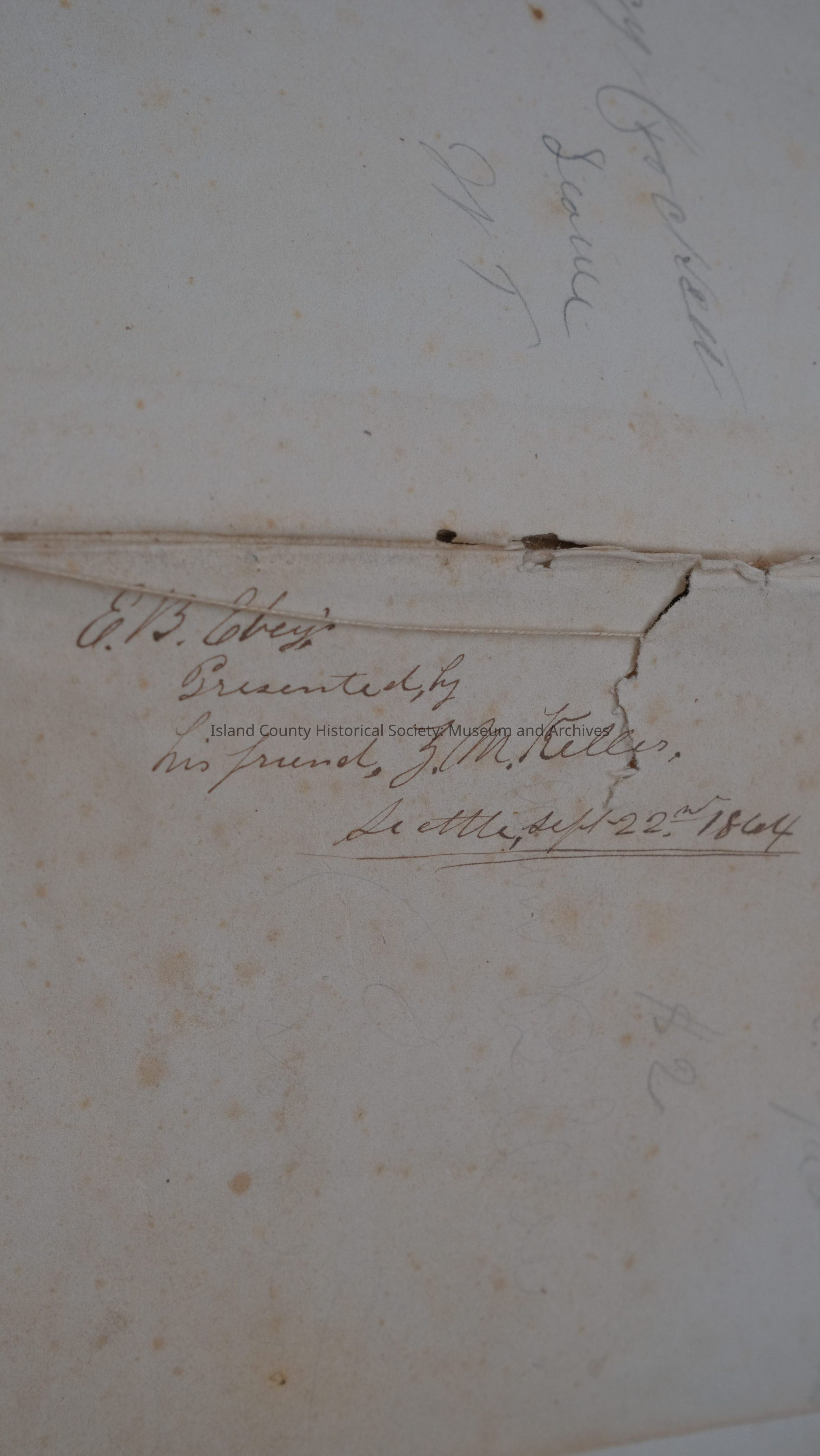 (no author), Sargent's Intermediate Standard Speaker, pages missing. Inscription dated 1864 and 1865. (E.B. Ebey Presented by his friend Z. M. Keller Seattle, Sept. 22nd 1864; also has: Harvey Crockett Seattle W.T.; Z. M. Keller Seattle, W.T. Jan 1 1863) (rebind) 2016.015.060 12.27Lexicon