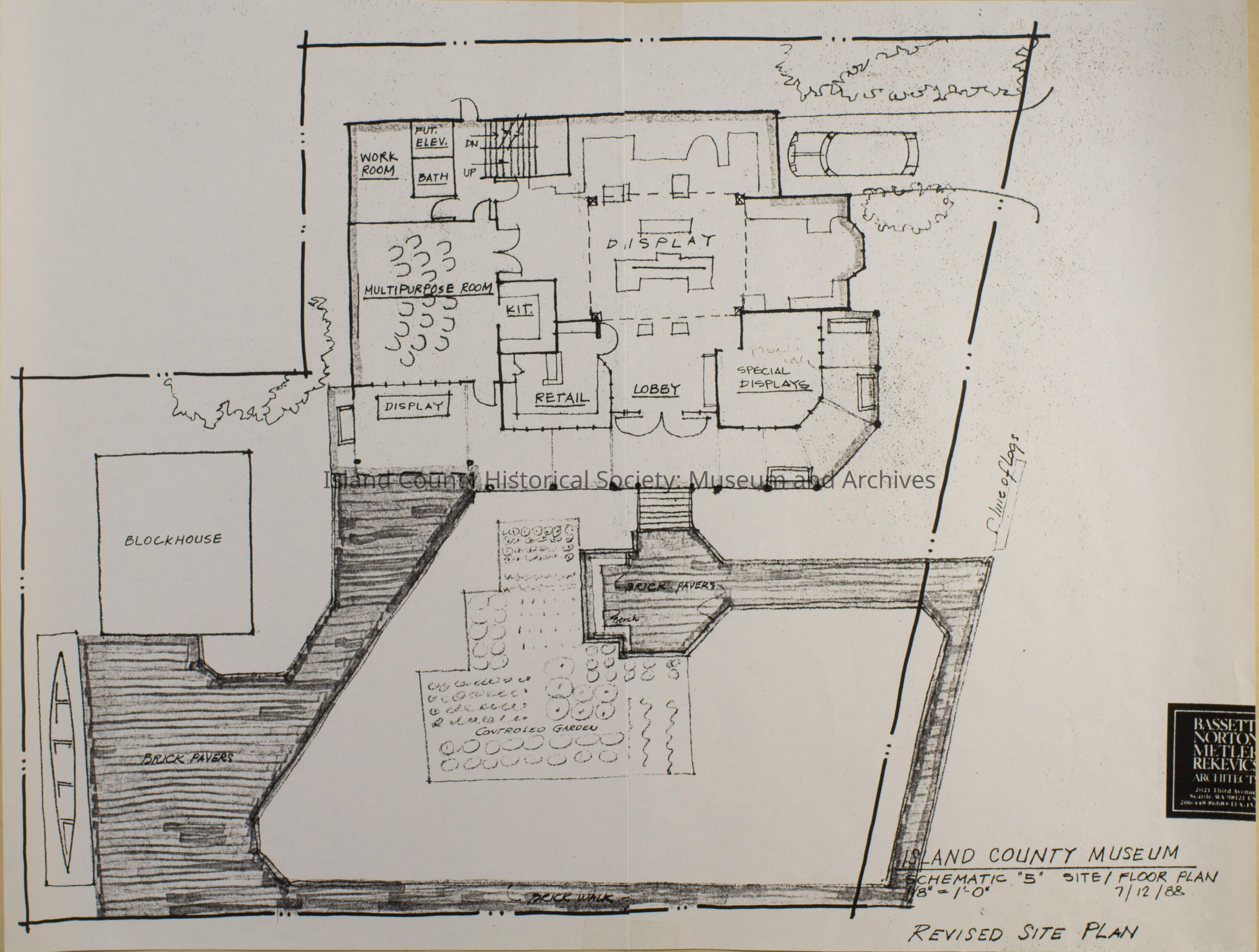 Architect Drawing - Schematic 5 Site and Floor Plan of Island County Museum Building -1988; black & white version