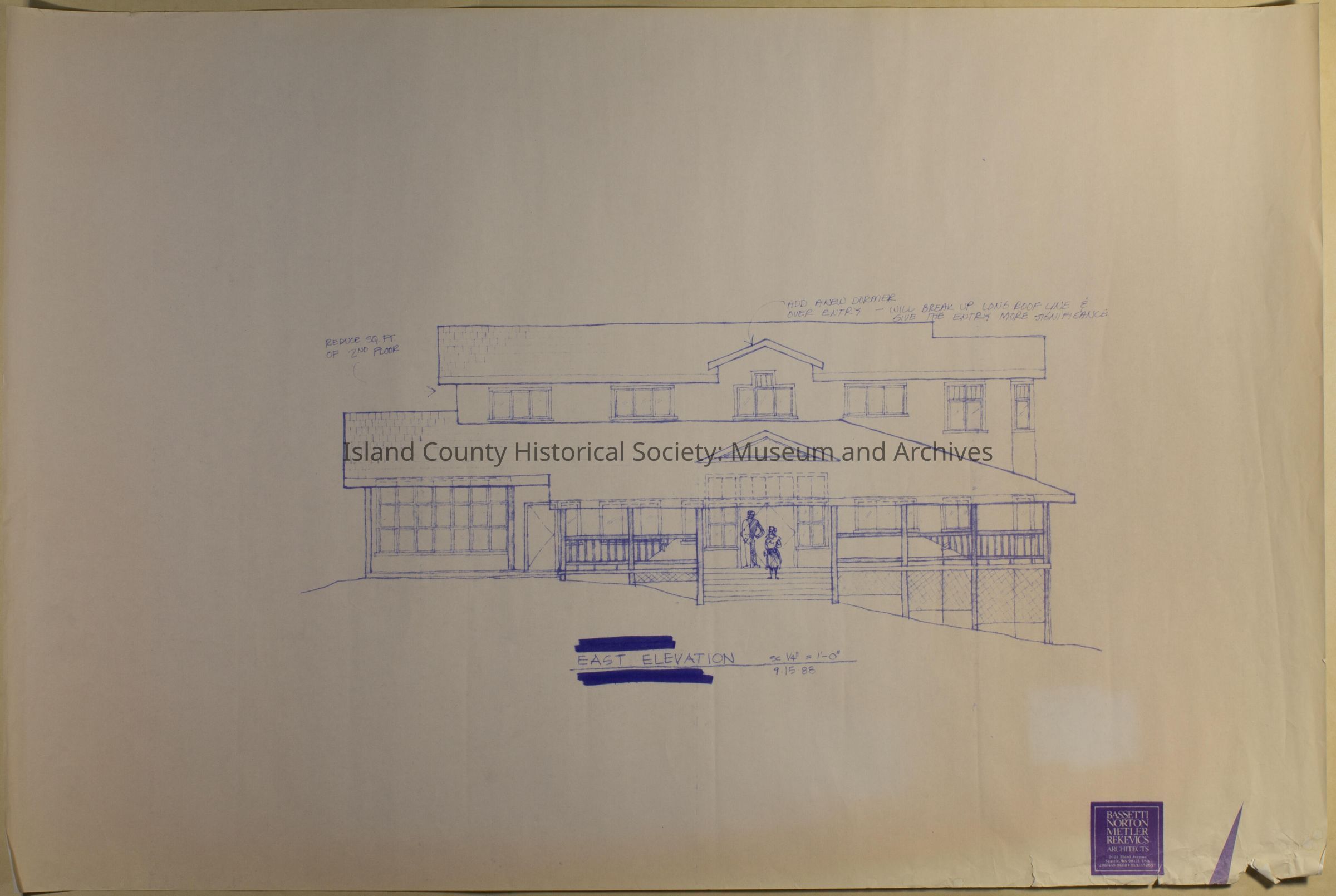 Architect Drawing of Island County Museum Building -1988; East elevation