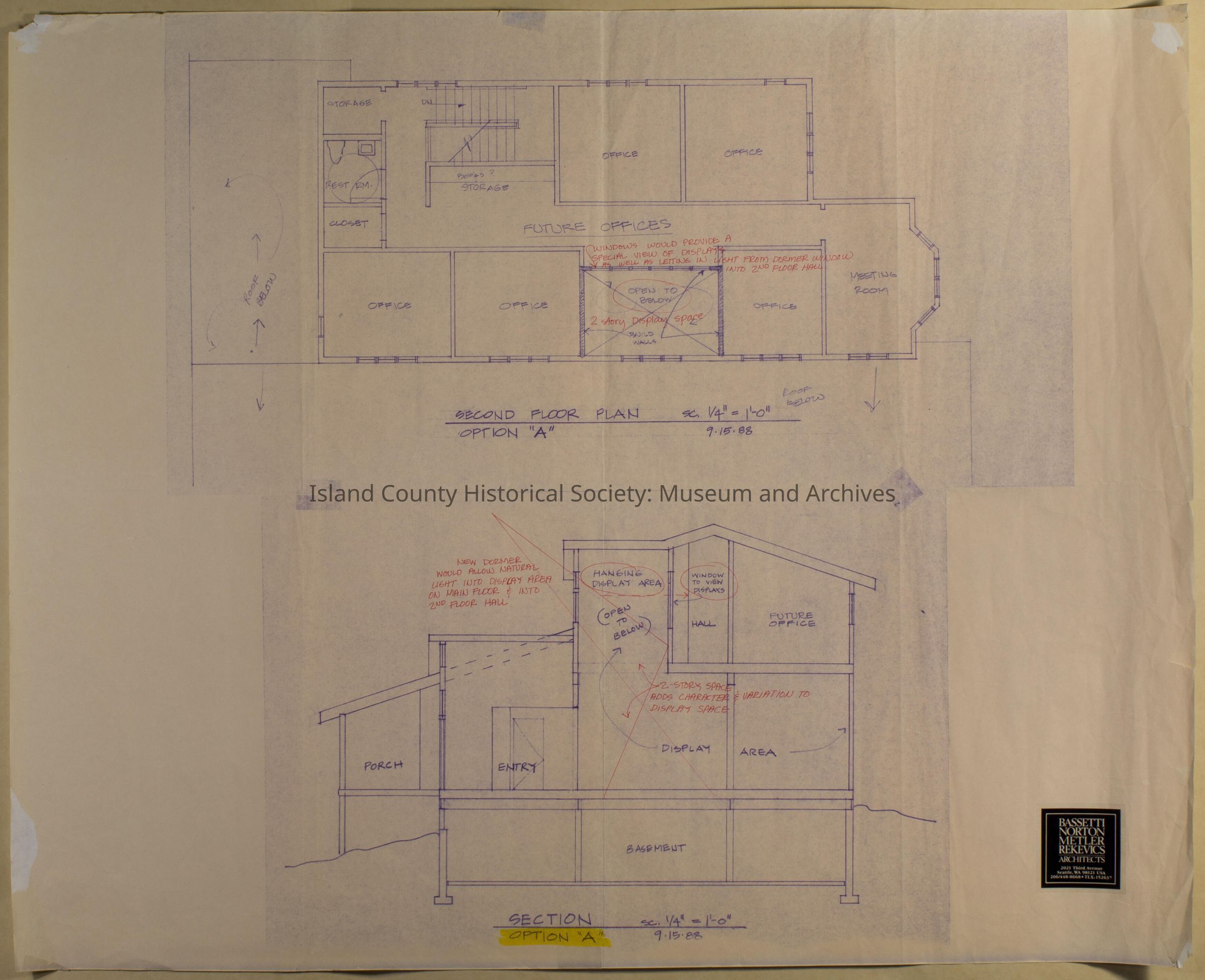 Architect Drawing of Island County Museum Building -1988; 2nd Floor - Option A