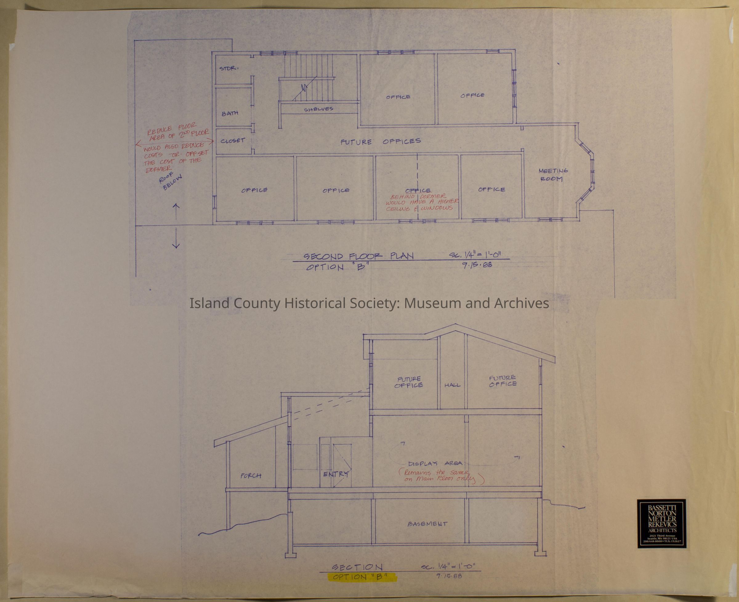 Architect Drawing of Island County Museum Building -1988; 2nd Floor - Option B