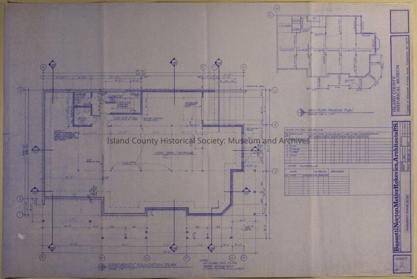 Architect Drawing of Island County Museum Building -1988; Basement & Foundation Plan - Sheet 2