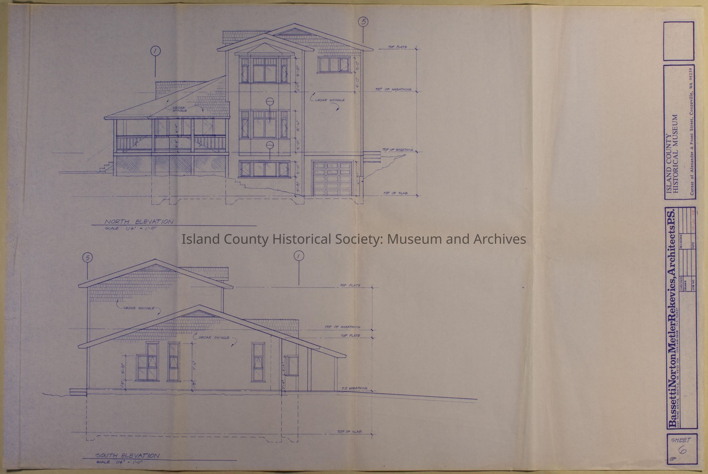Architect Drawing of Island County Museum Building -1988; North & South Elevations - Sheet 6