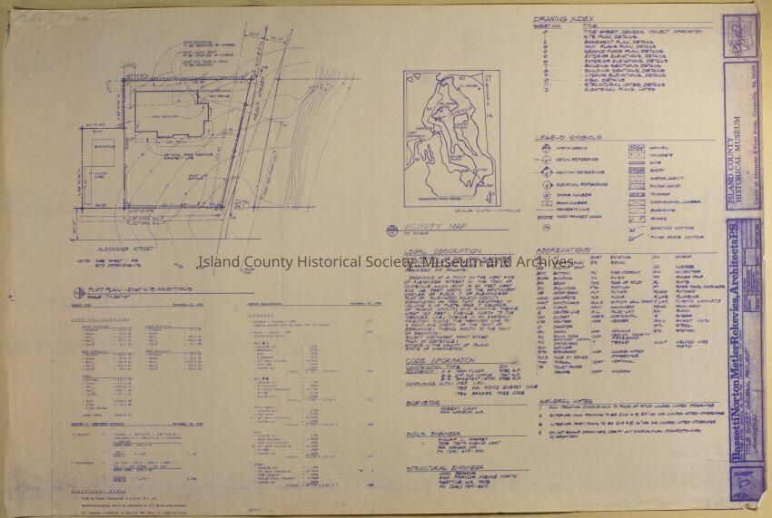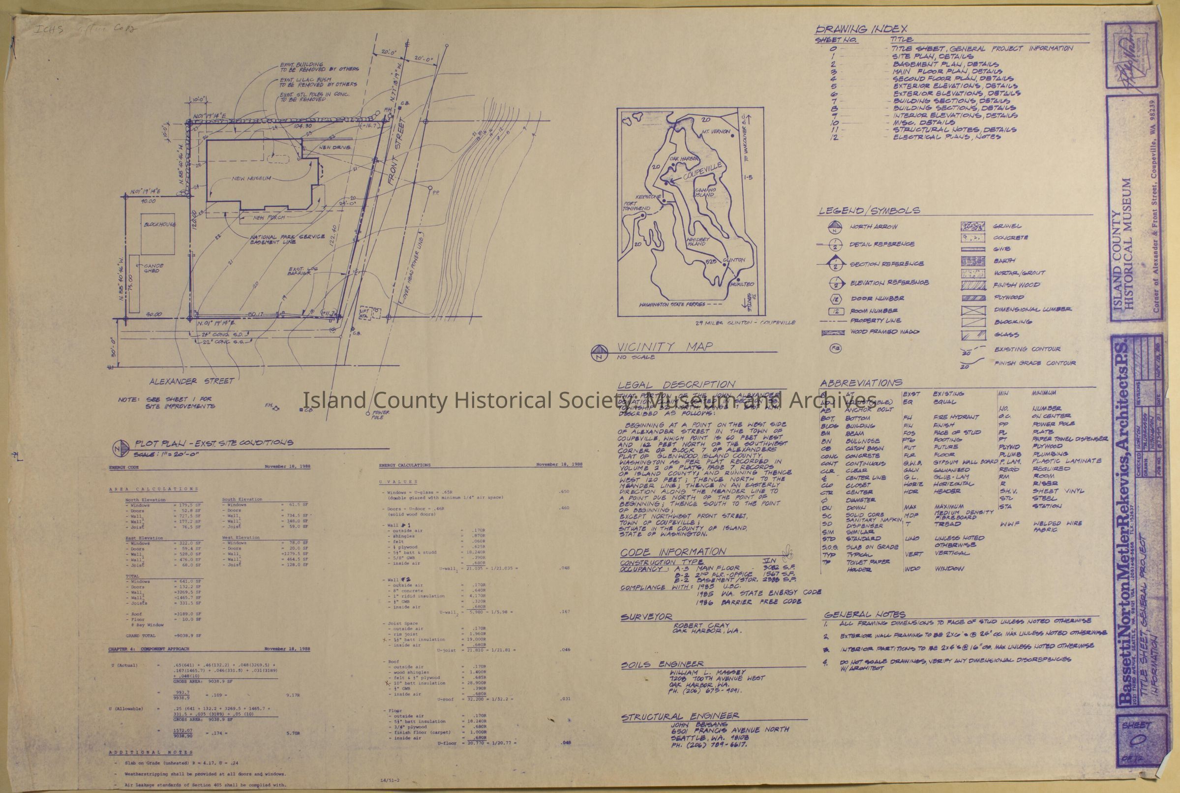 Architect Drawing of Island County Museum Building -1988; Plot Plan & Vicinity Map - Sheet 0