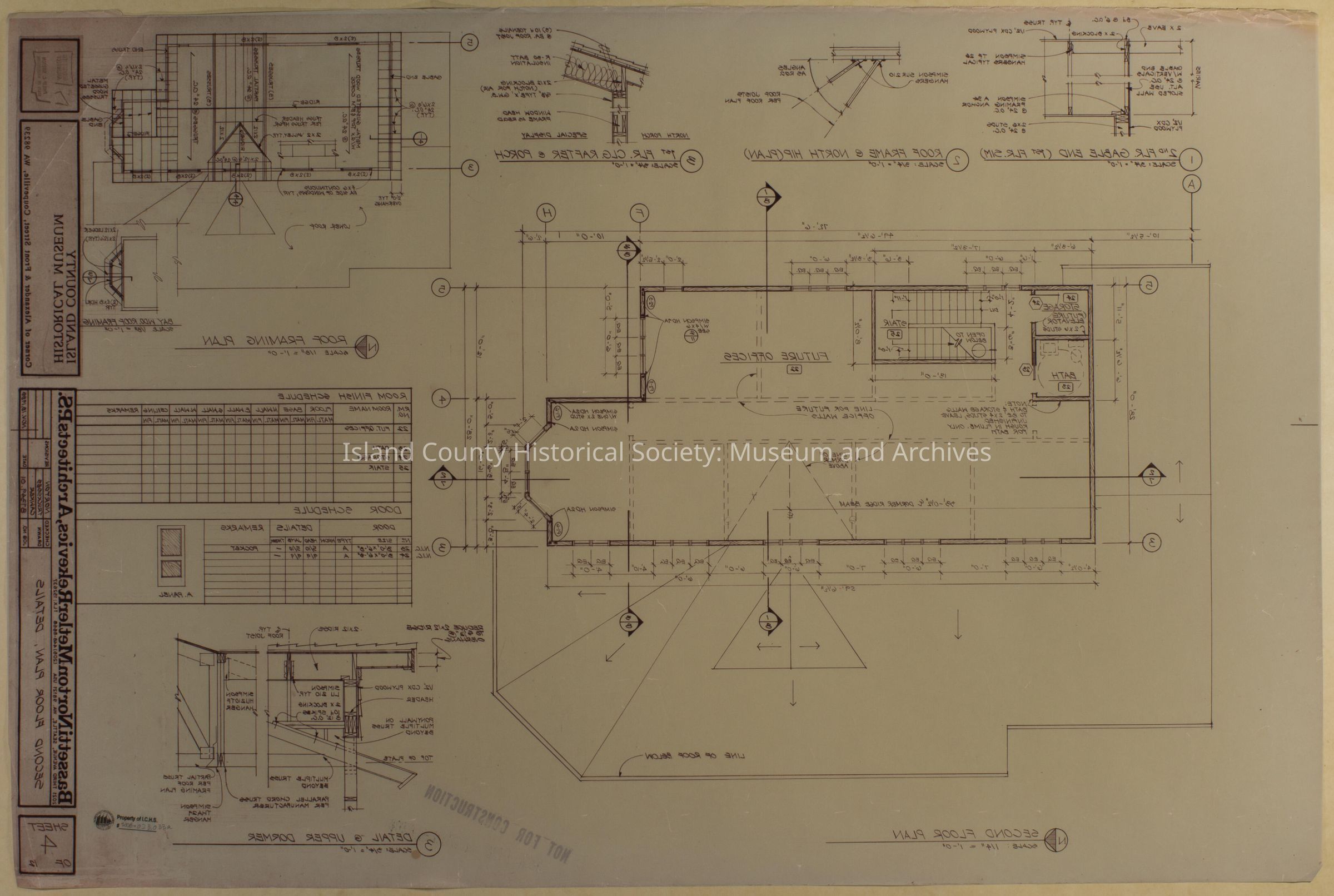 Architect Drawing of Island County Museum Building -1988; Second Floor Plan - Sheet 4; reverse drawing