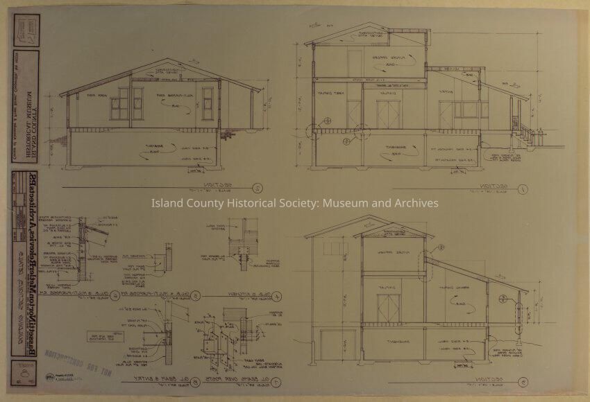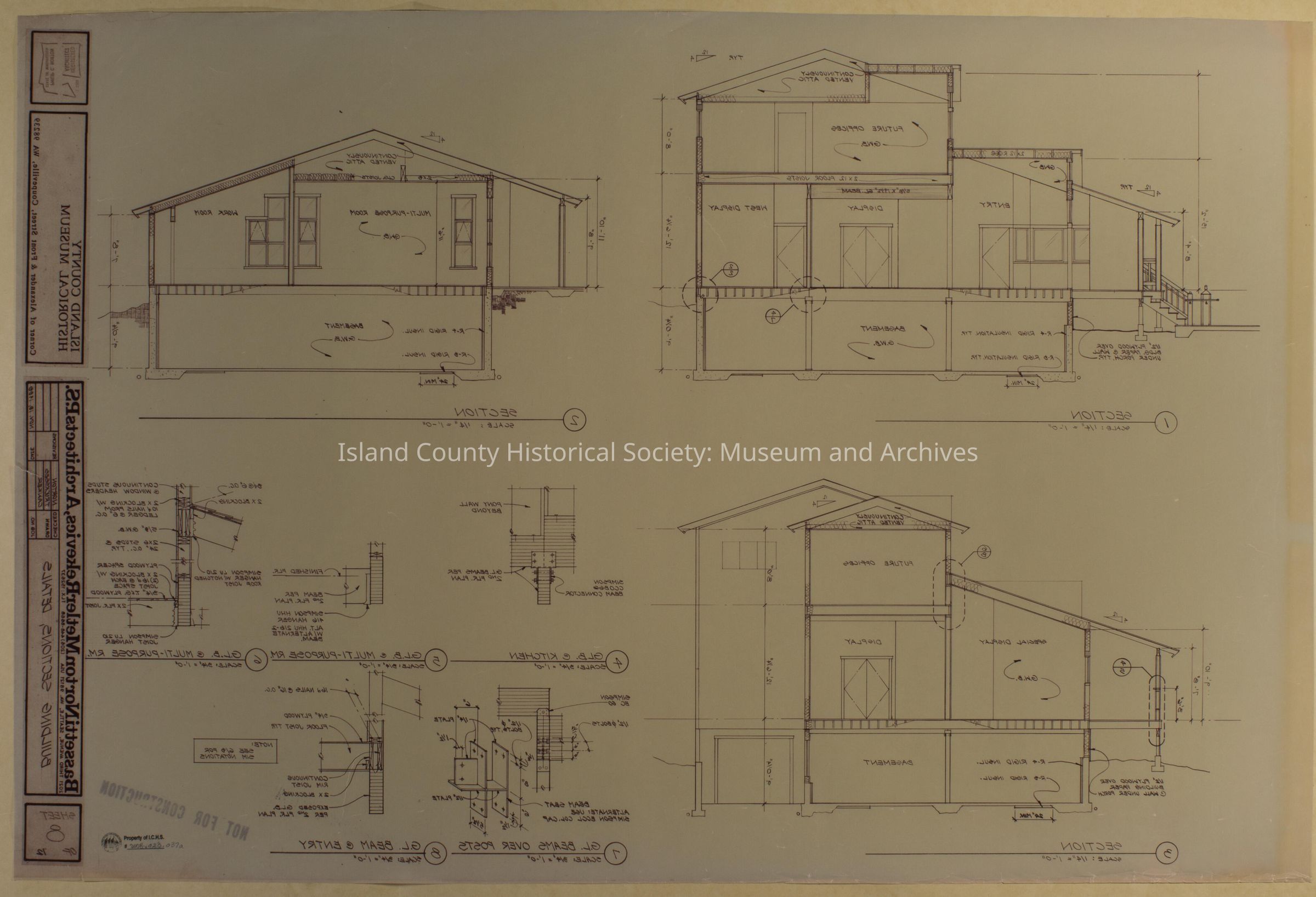 Architect Drawing of Island County Museum Building -1988; Building Sections, Details - Sheet 8; reverse drawing