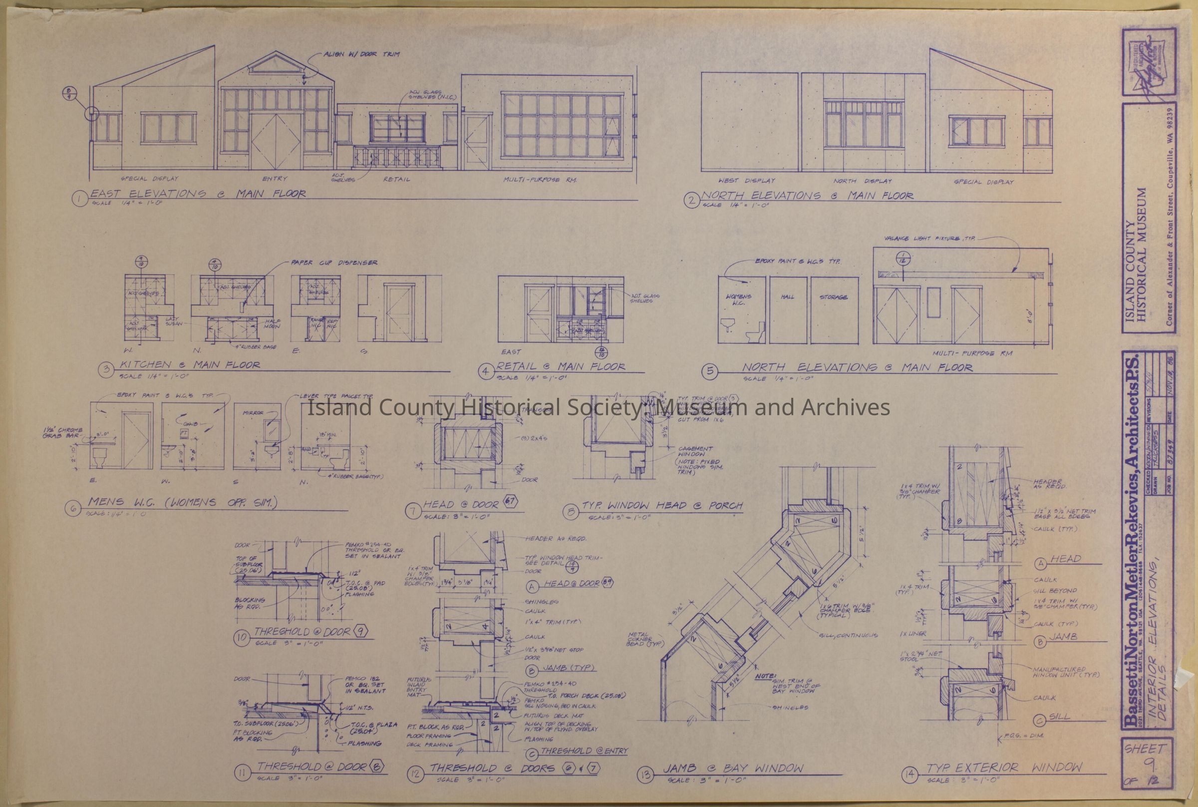 Architect Drawing of Island County Museum Building -1988; Interior Elevations, Details - Sheet 9