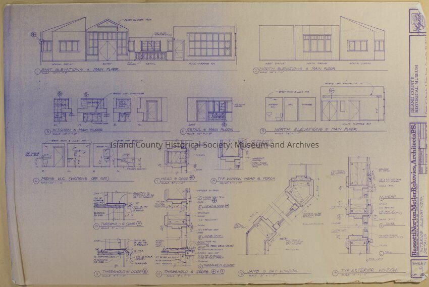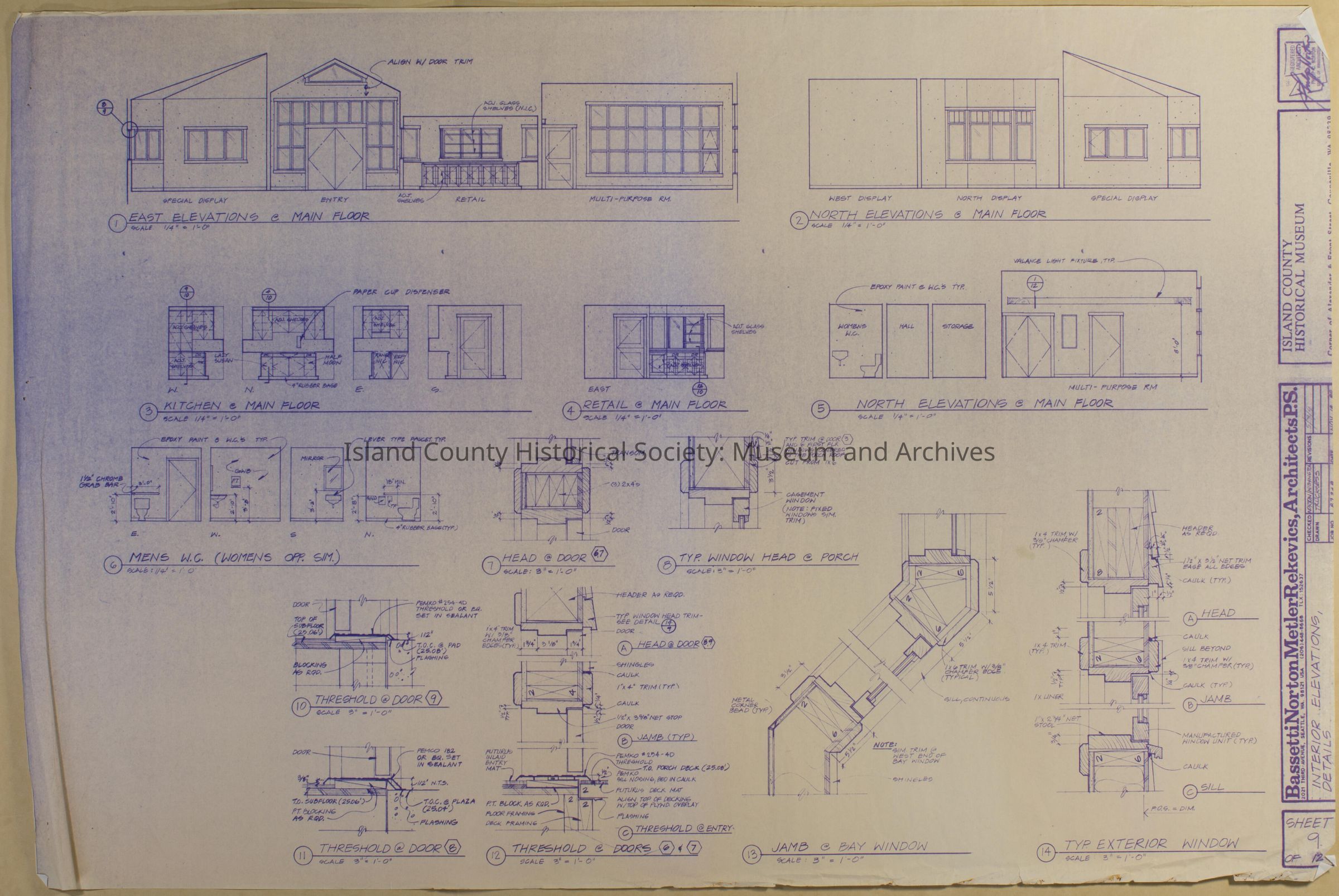 Architect Drawing of Island County Museum Building -1988; Interior Elevations, Details - Sheet 9