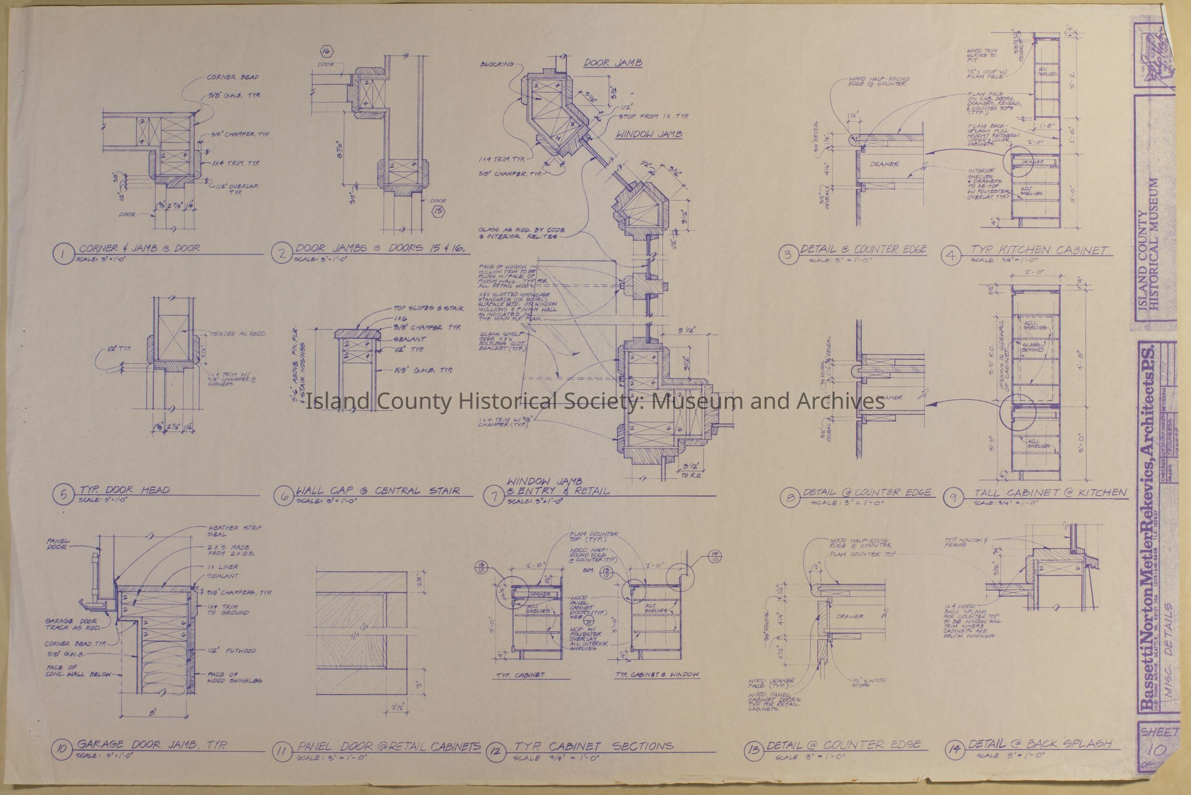 Architect Drawing of Island County Museum Building -1988; Miscellaneous Details - Sheet 10