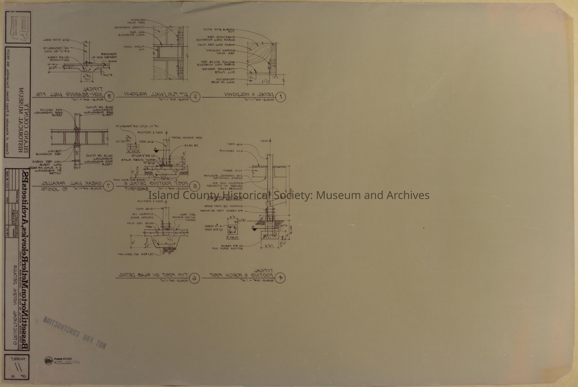 Architect Drawing of Island County Museum Building -1988; Structural Notes, Details - Sheet 11; reverse drawing