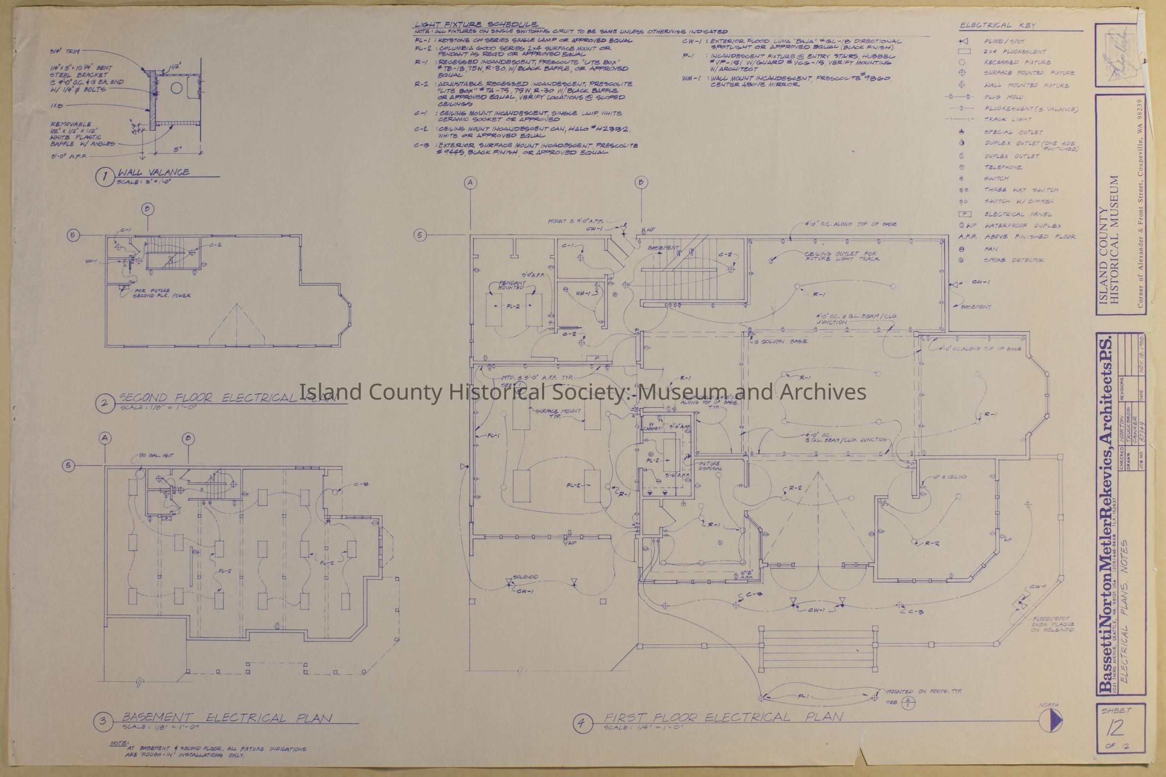Architect Drawing of Island County Museum Building -1988; Electrical Plans, Notes - Sheet 12