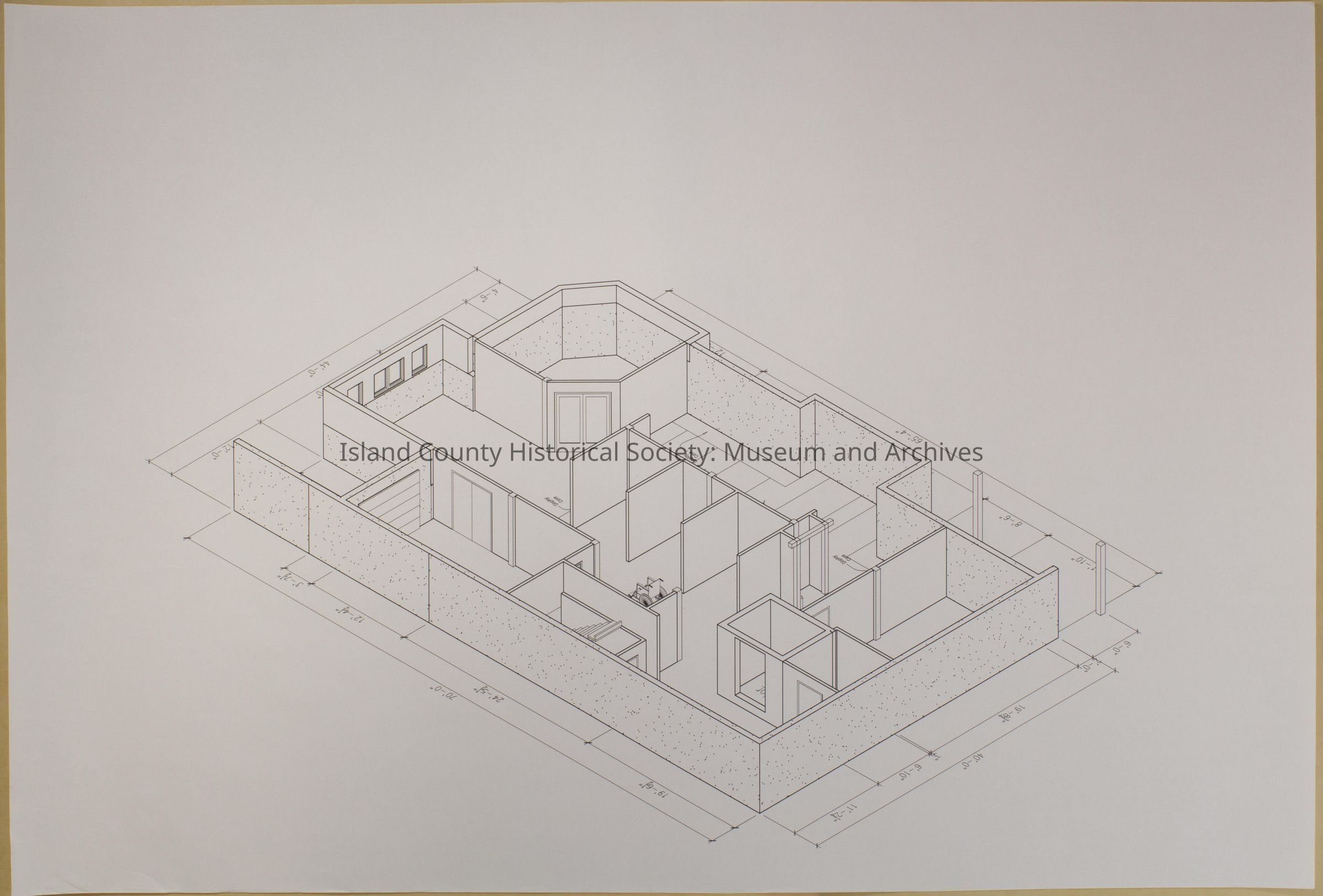 Architect Drawing of Island County Museum Renovation - 10/31/2003; basement schematic and dimensions
