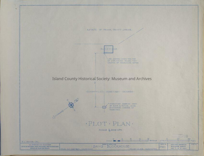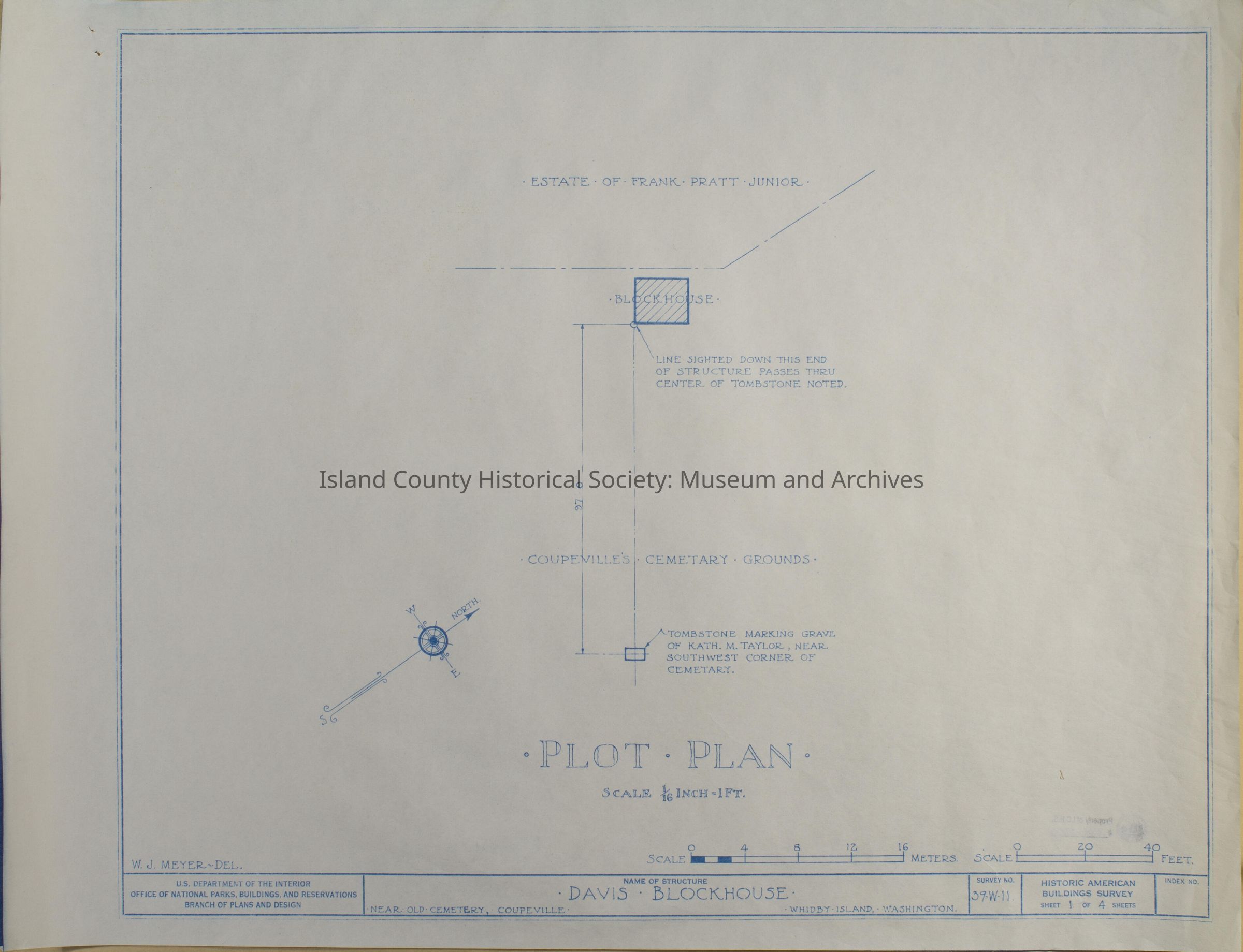 Architect Drawing of the Davis Blockhouse - Plot Plan. Survey No. 39-W-11 - Sheet 1 of 4.