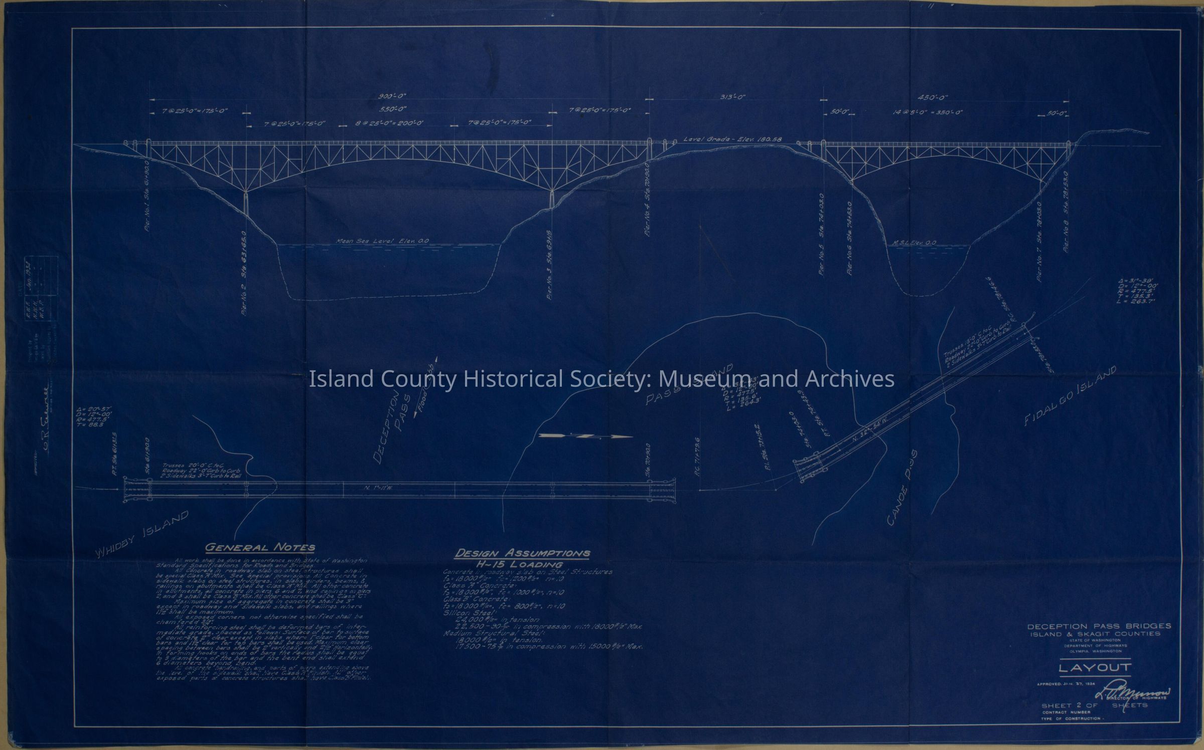1934 Design Layout of Deception and Canoe Bridges (large size) Blueprint - Sheet 2