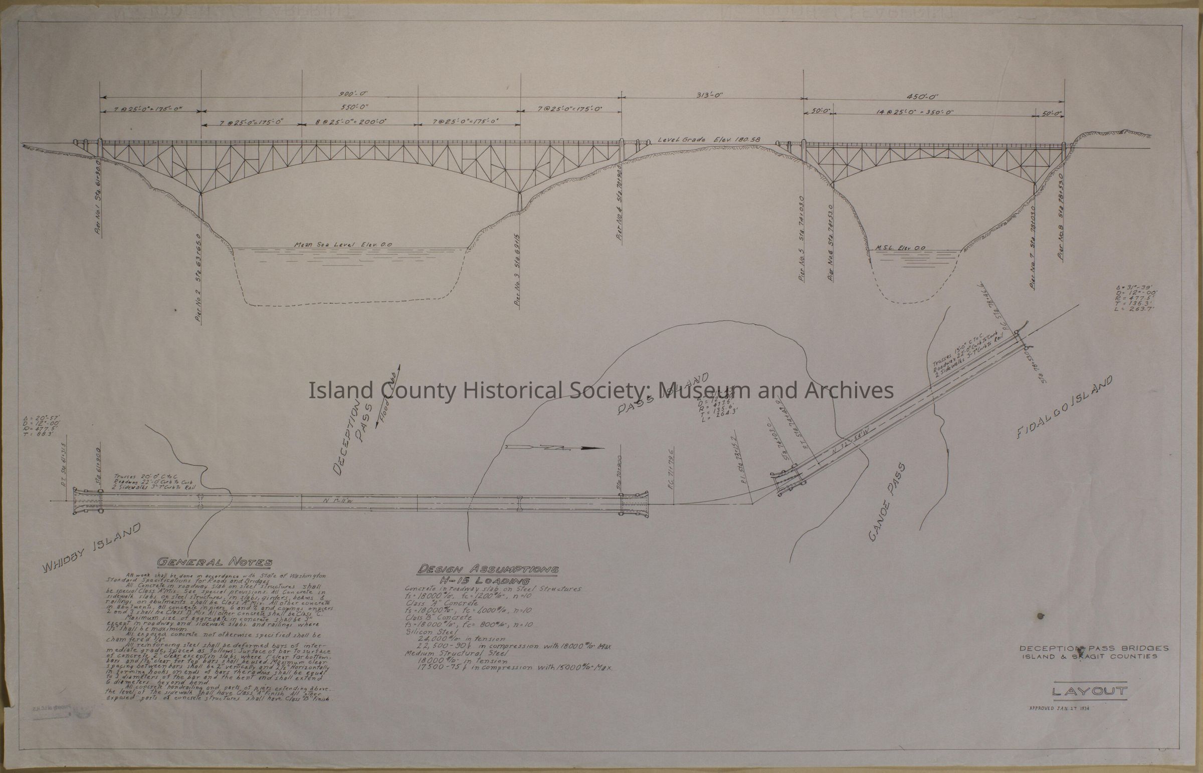 1934 Design Layout of Deception and Canoe Bridges (large size)