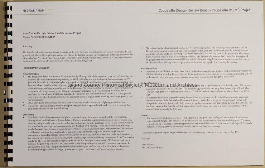 Coupeville School District No. 204, High School Project, Design Review, Building Elevations Resubmittal (book) 7.7.05