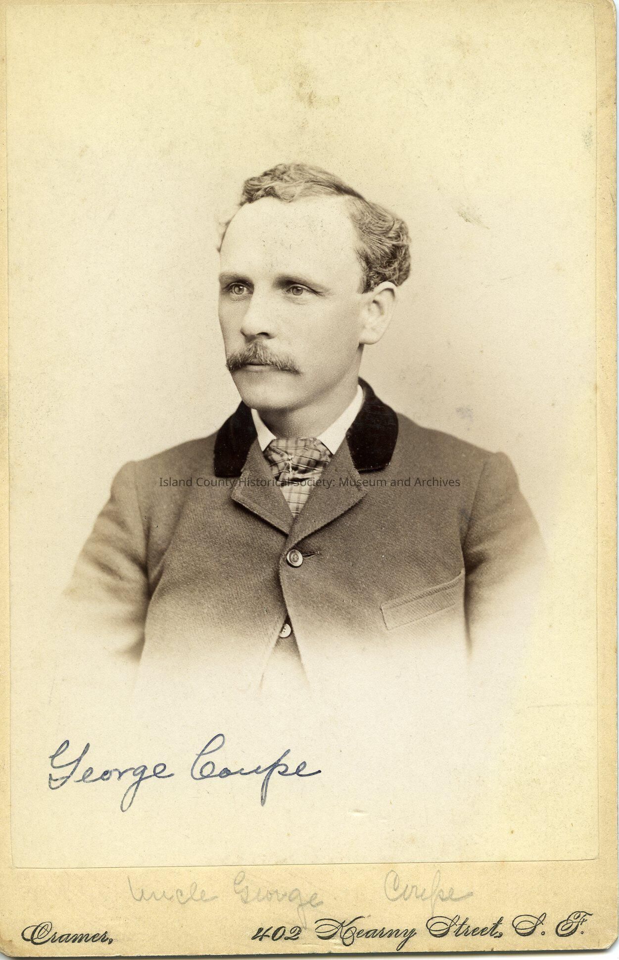 A photo of a man. A handwritten note on the front is "George Marshall Coupe. George Coupe from Coupe Family Album, "Uncle George Coupe" From old entry: George Marshall Coupe. 2 1/4 x 3 1/4 negative in same folder.