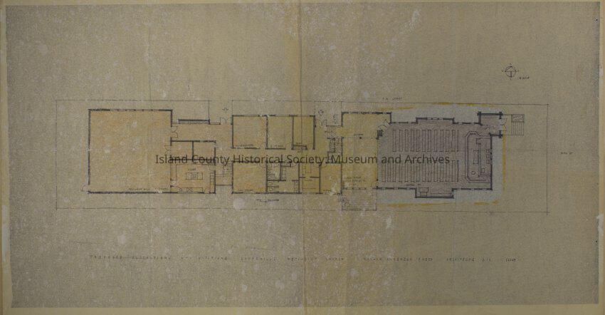 Schematic of proposed alterations and additions to the Coupeville Methodist Church. Durham, Anderson, & Freed Architects. 2/22/69