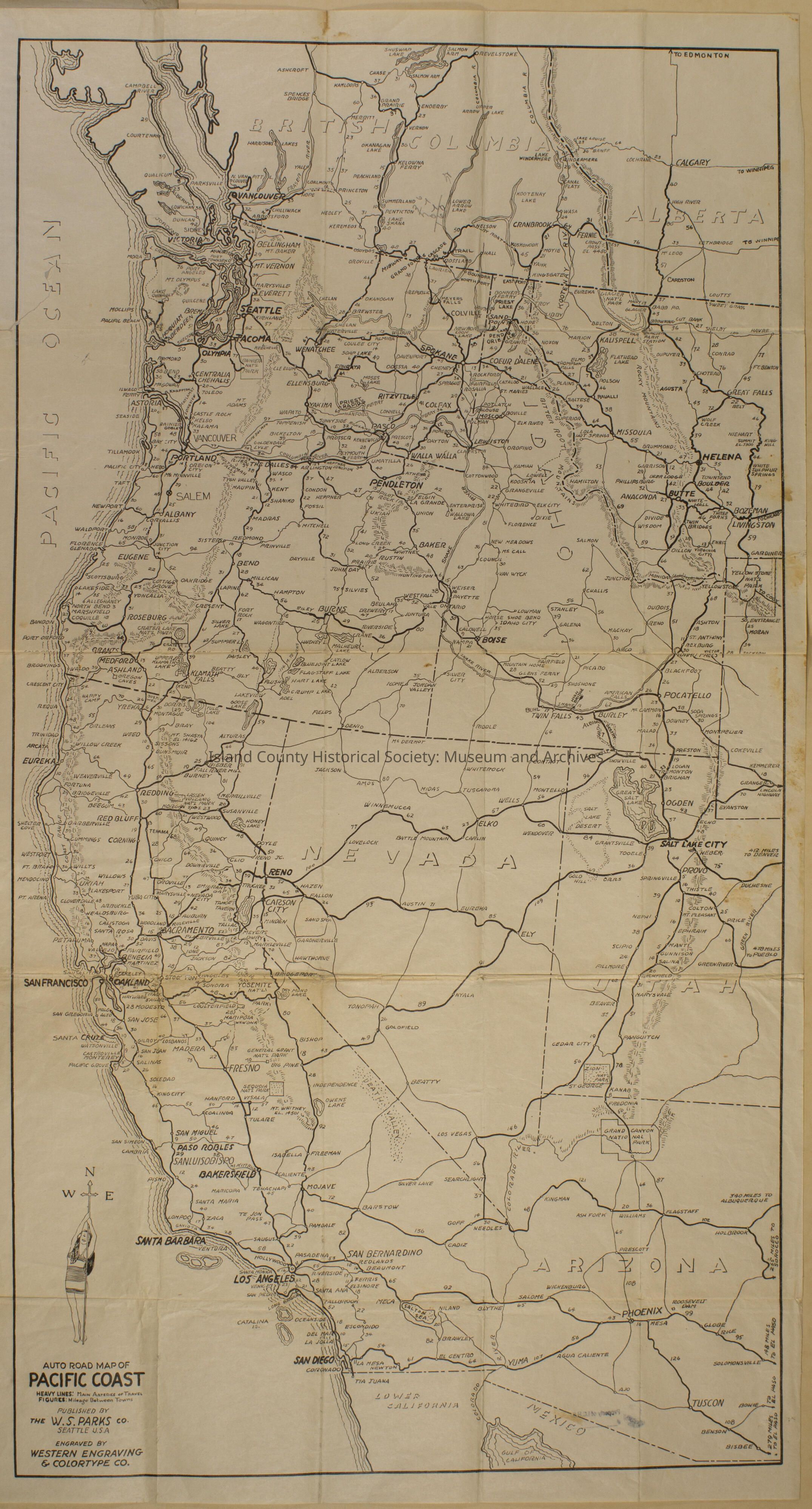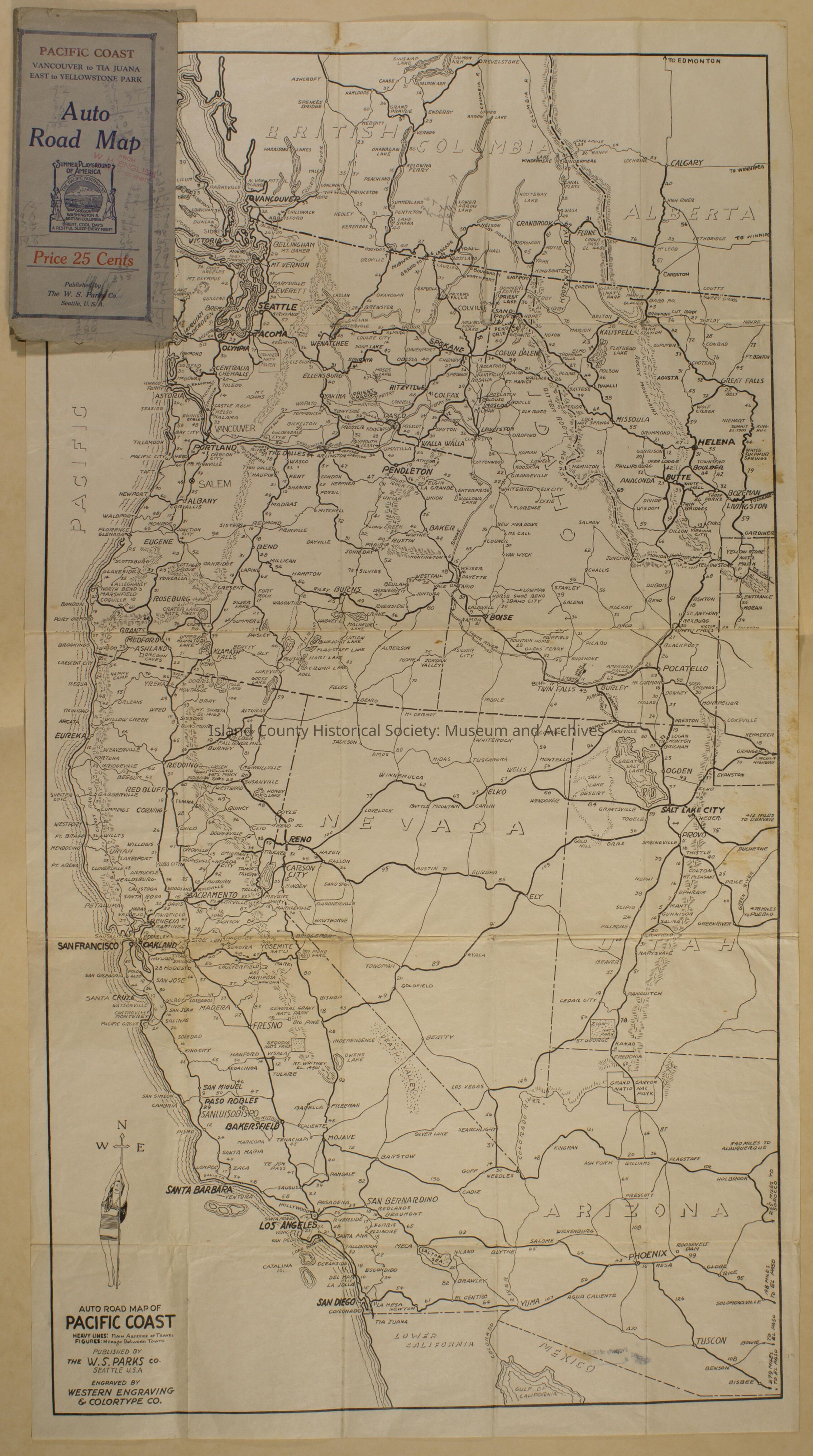 Auto road map of Pacific Coast - front & back. No date. Cost was 25 cents.