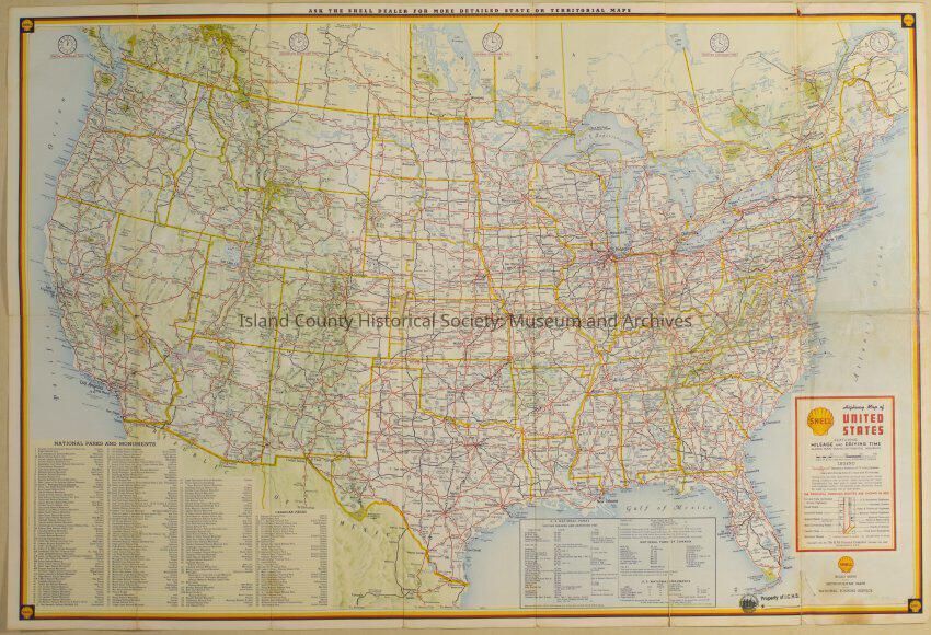 Shell Map of United States, 1961. Front & back color maps.