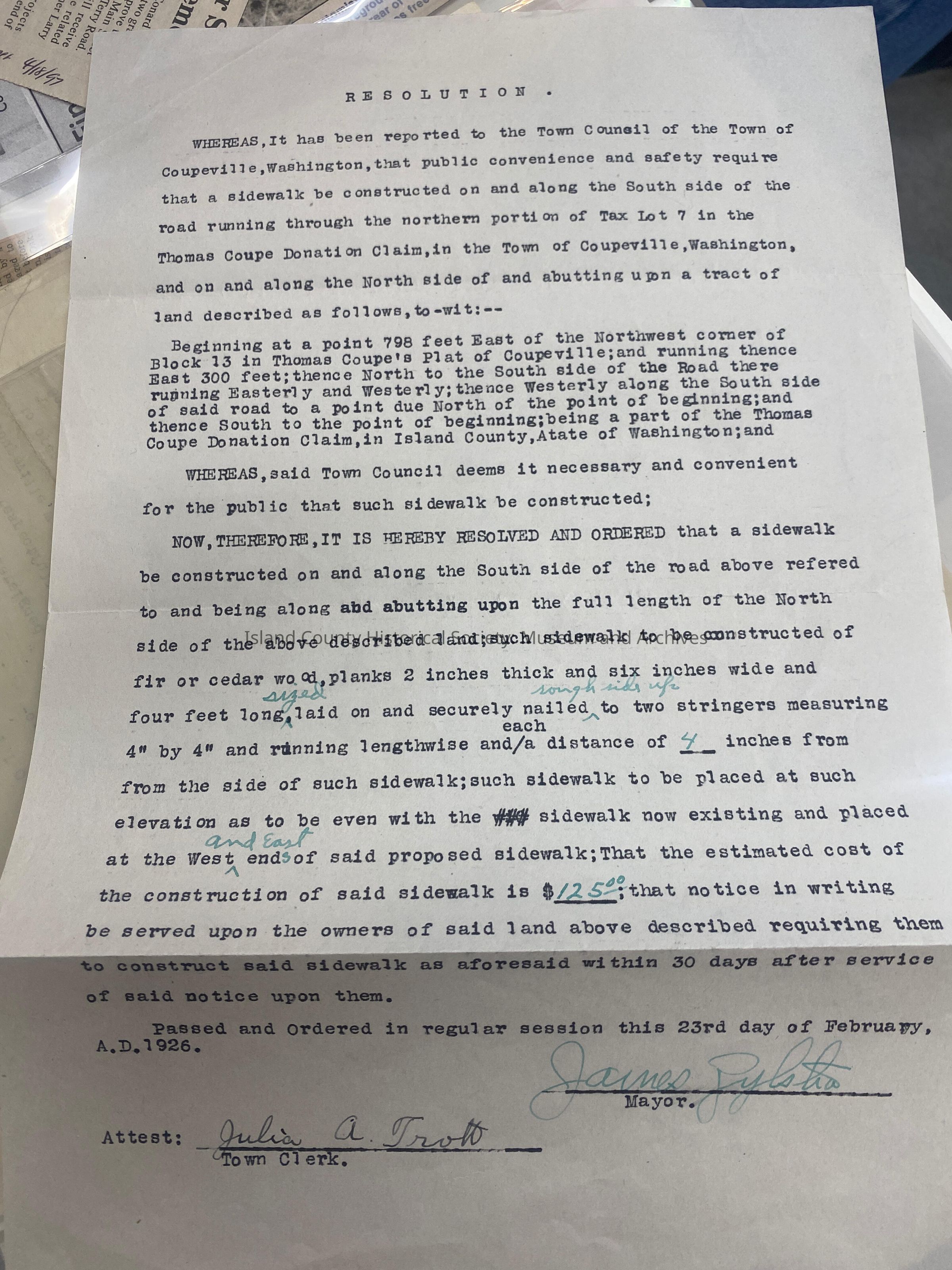 Resolution of Sidewalk Lot 7