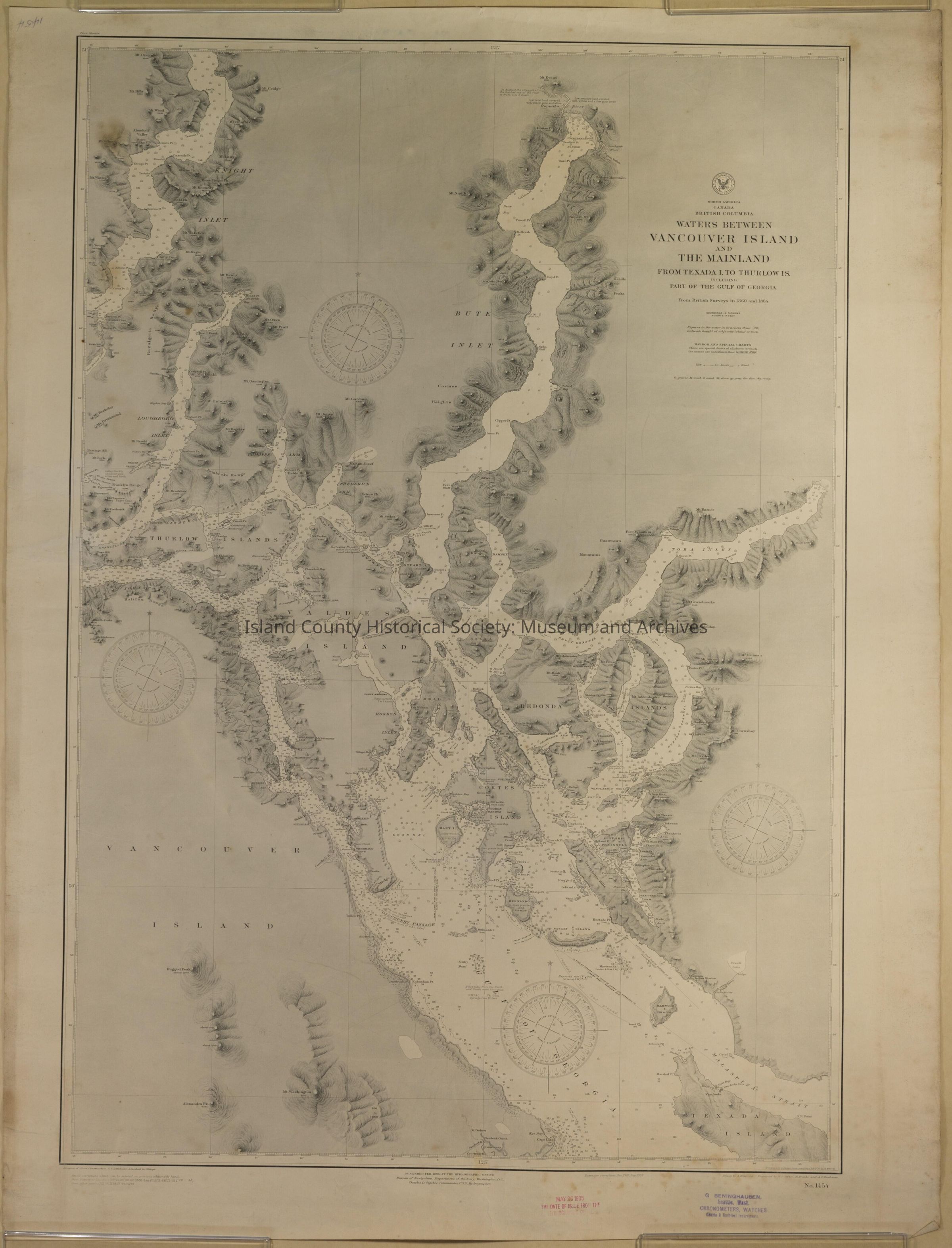 Navigation chart of Waters Between Vancouver Island and the Mainland from Texada Island to Thurlow Island. 1905 - from British surveys in 1860 and 1864