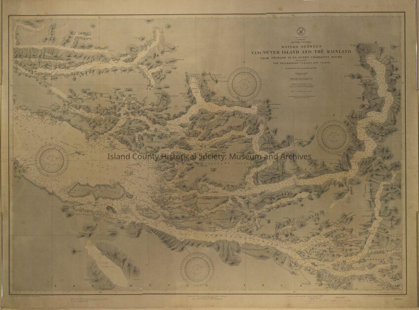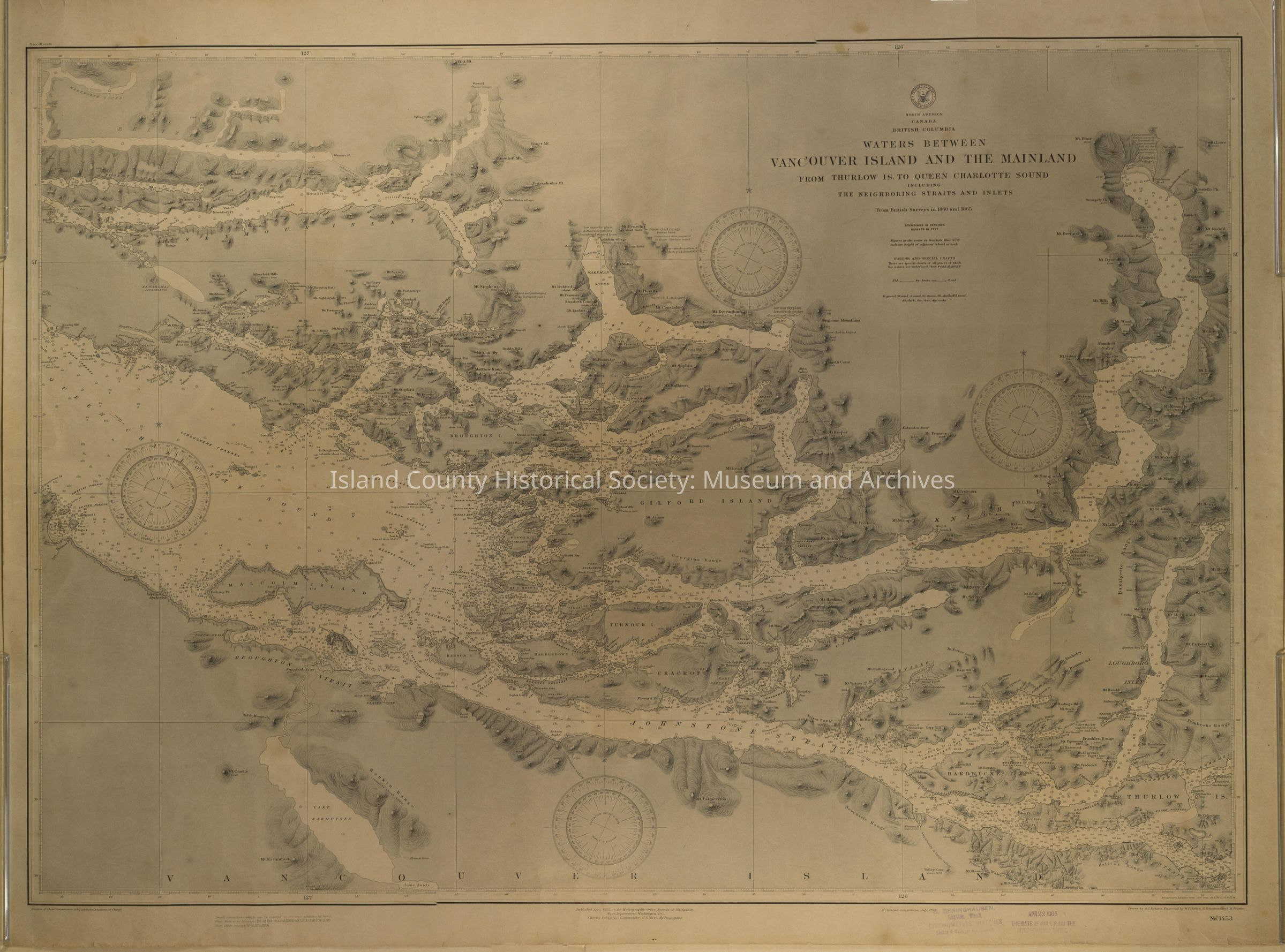 Navigation chart of Waters between Vancouver Island and the Mainland from Thurlow Island to Queen Charlotte Sound; 1905 - from British surveys in 1860 and 1865