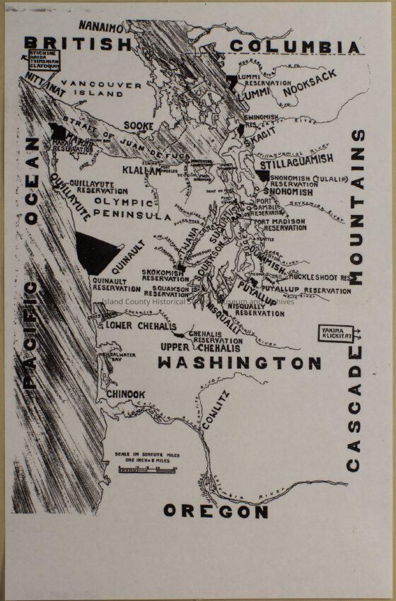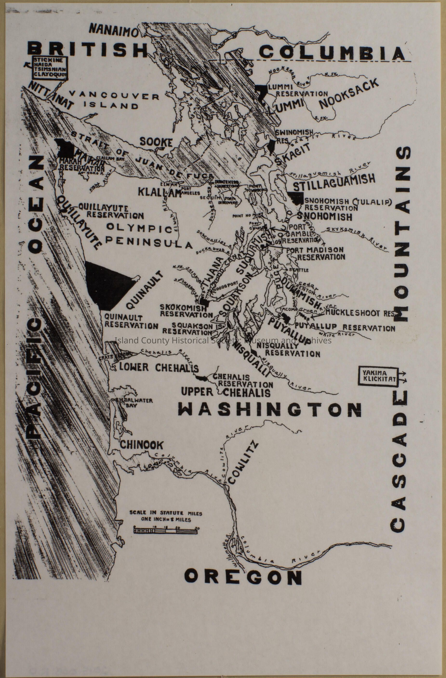 Laminated map of Oregon, Washington and part of British Columbia showing Tribal areas and Reservations.