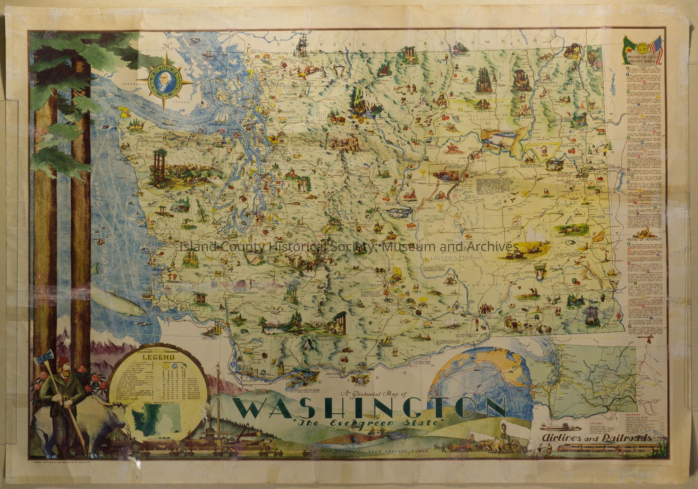 A Pictorial Map of Washington the Evergreen State. Color map.