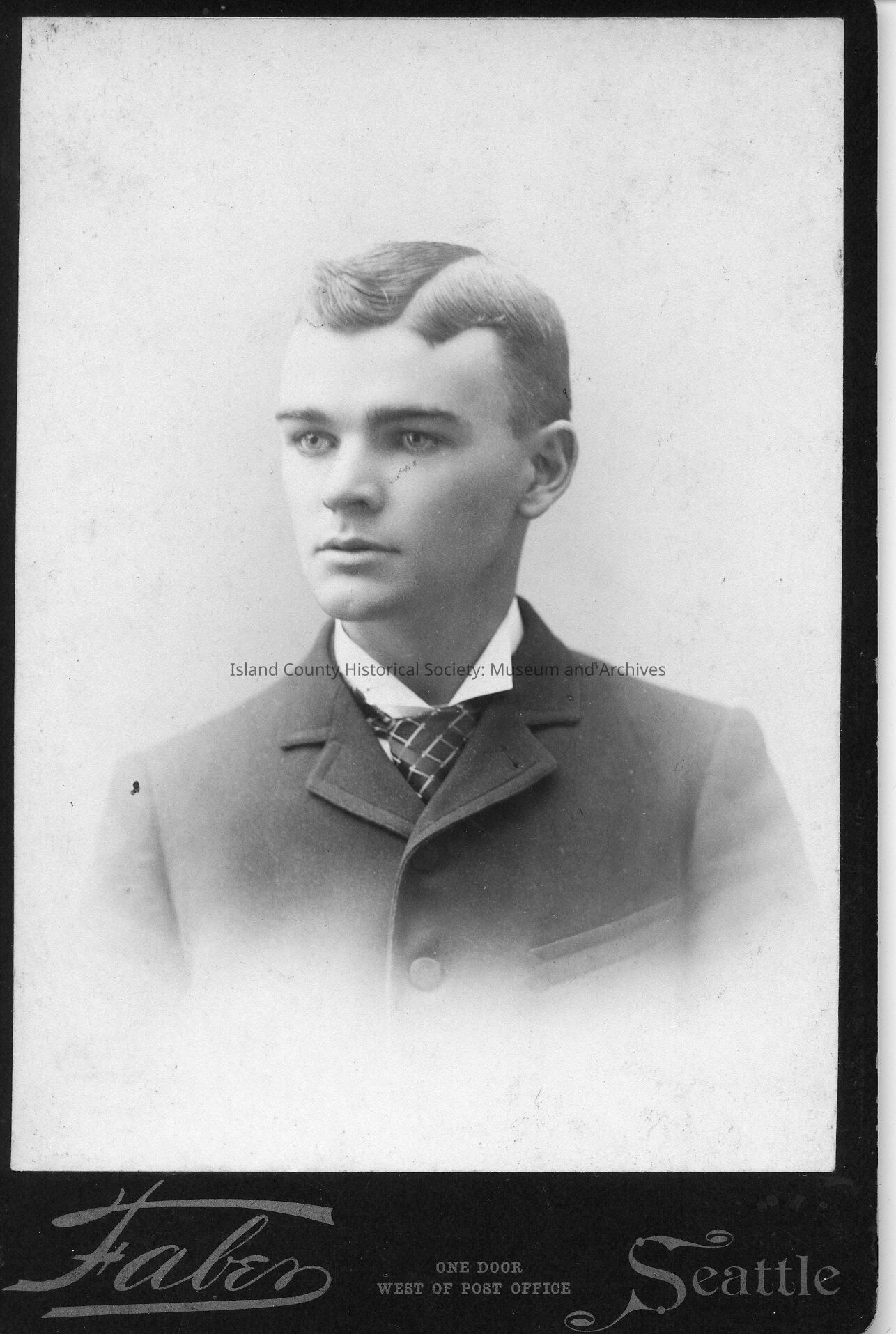 A photo of a young man. A note on the front says "14. Georgie Booth from Mary Coupe Fam. Album 14. Faber Studio, Seattle."