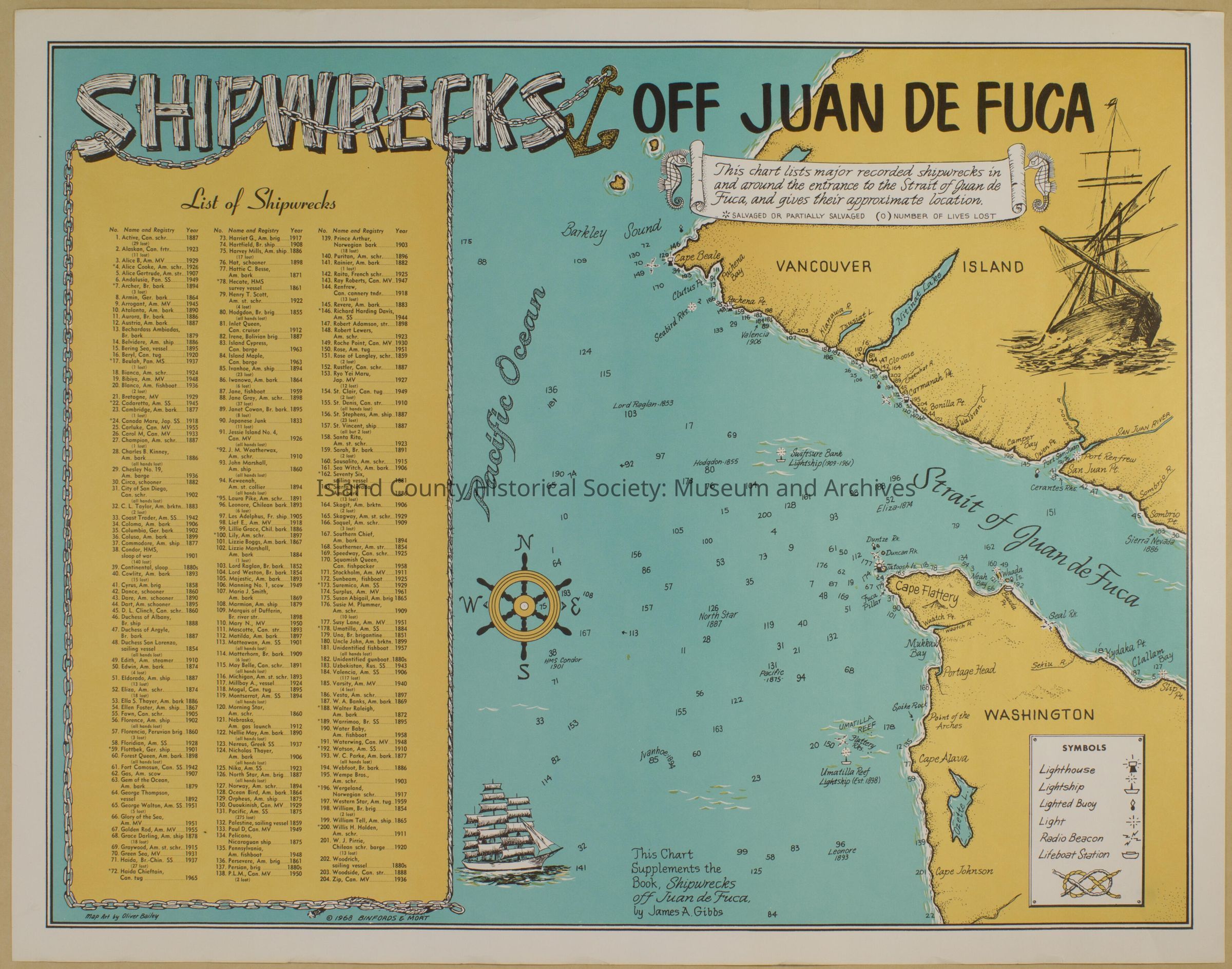 Shipwrecks of Juan de Fuca 1968. Color map.