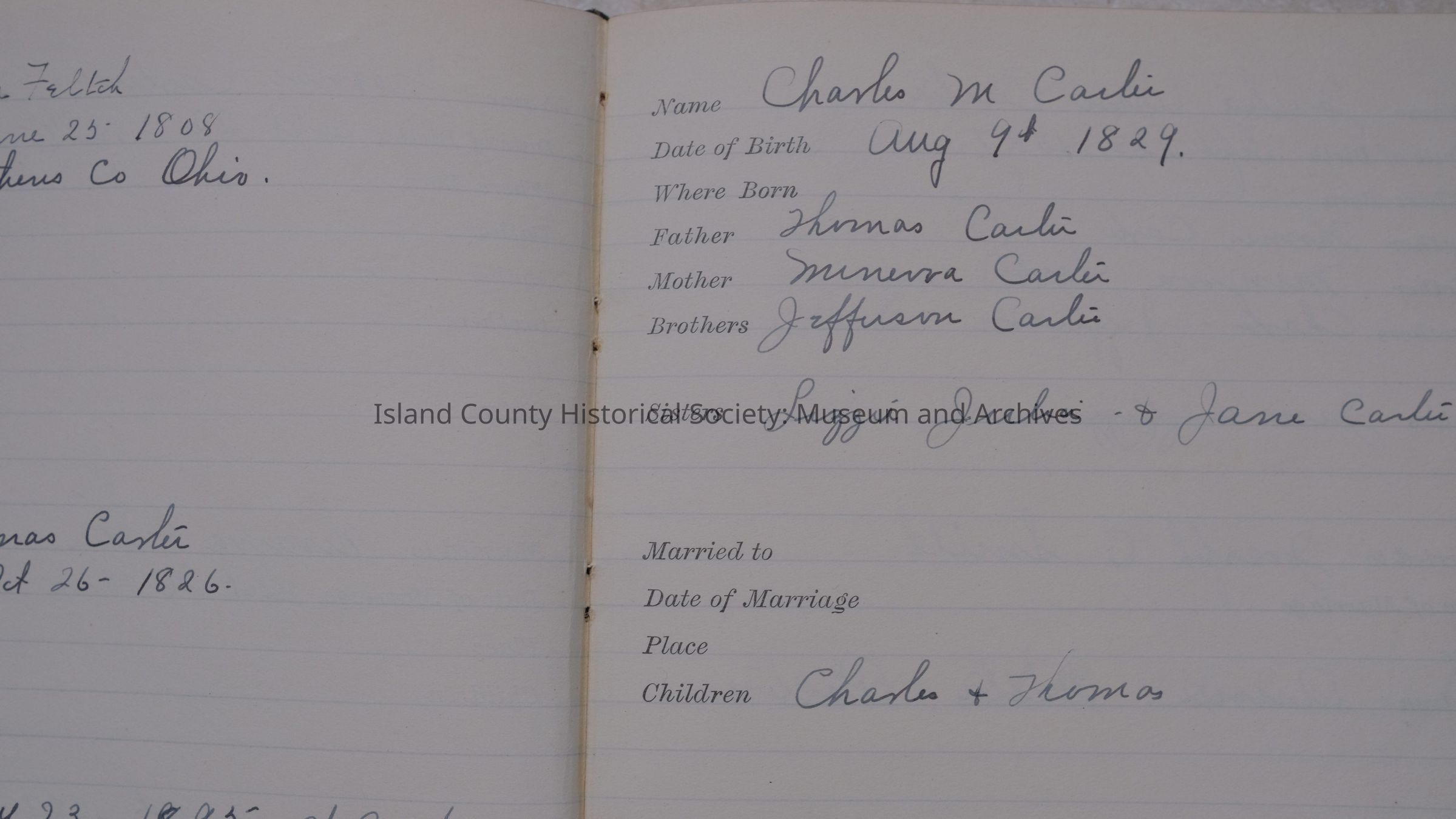 Family Record: Carlin/Carter, Conner, Feltch, Kinneth, (details on people, no details on when this was documented). Old: 87-02-03-17; In accession book as: 87-02-19 21.11 black leather