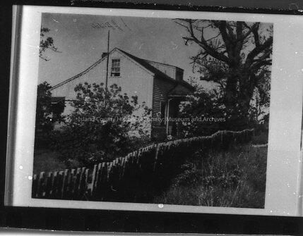 A print of a negative of a house. Handwritten on a note says "Thomas Coupe House." A note with the print was stamped Mar 23 1992.