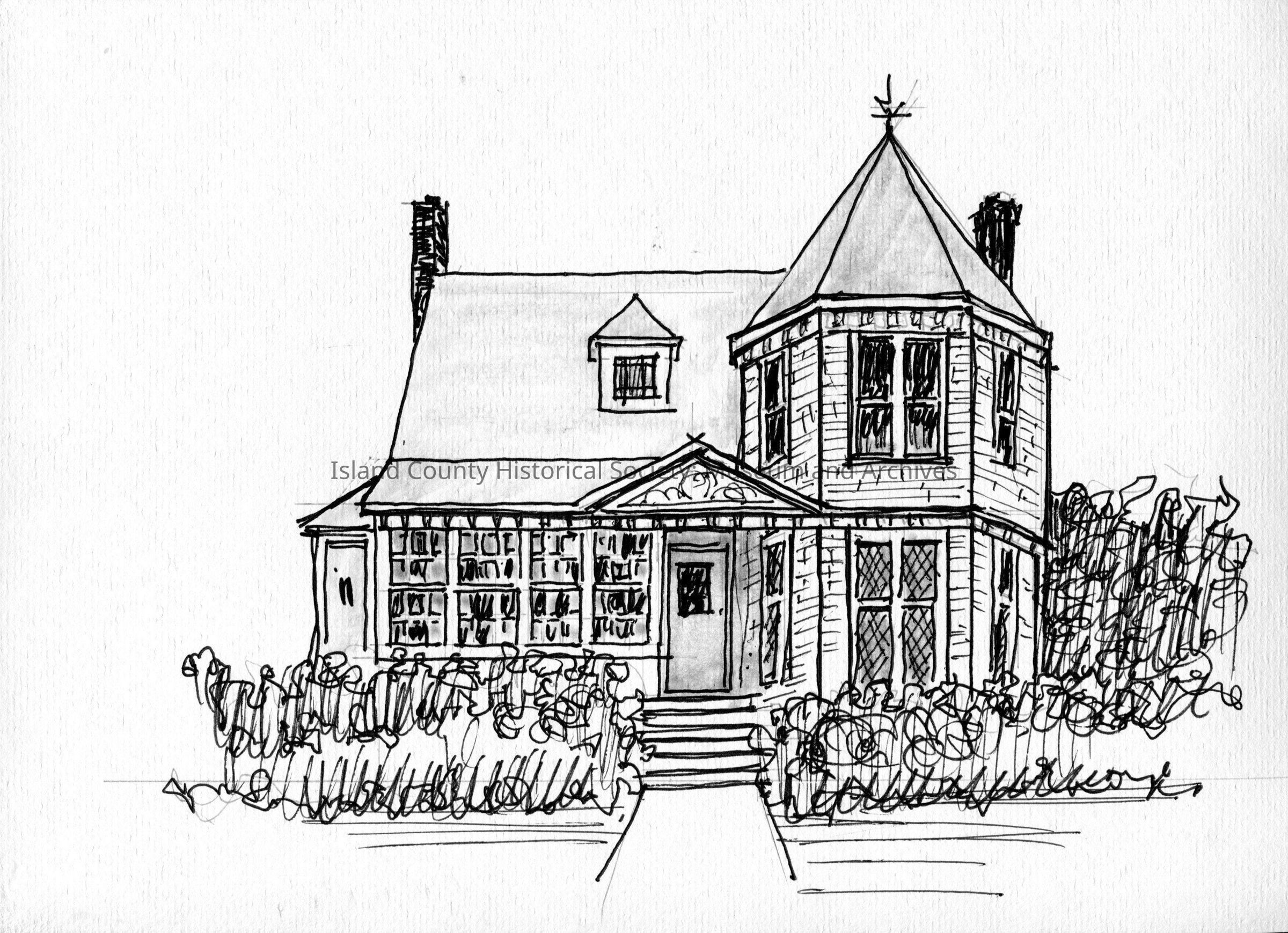 Handrawing of the Todd/Parker home. Drawings were used to make notecards to be sold in museum store.Lexicon