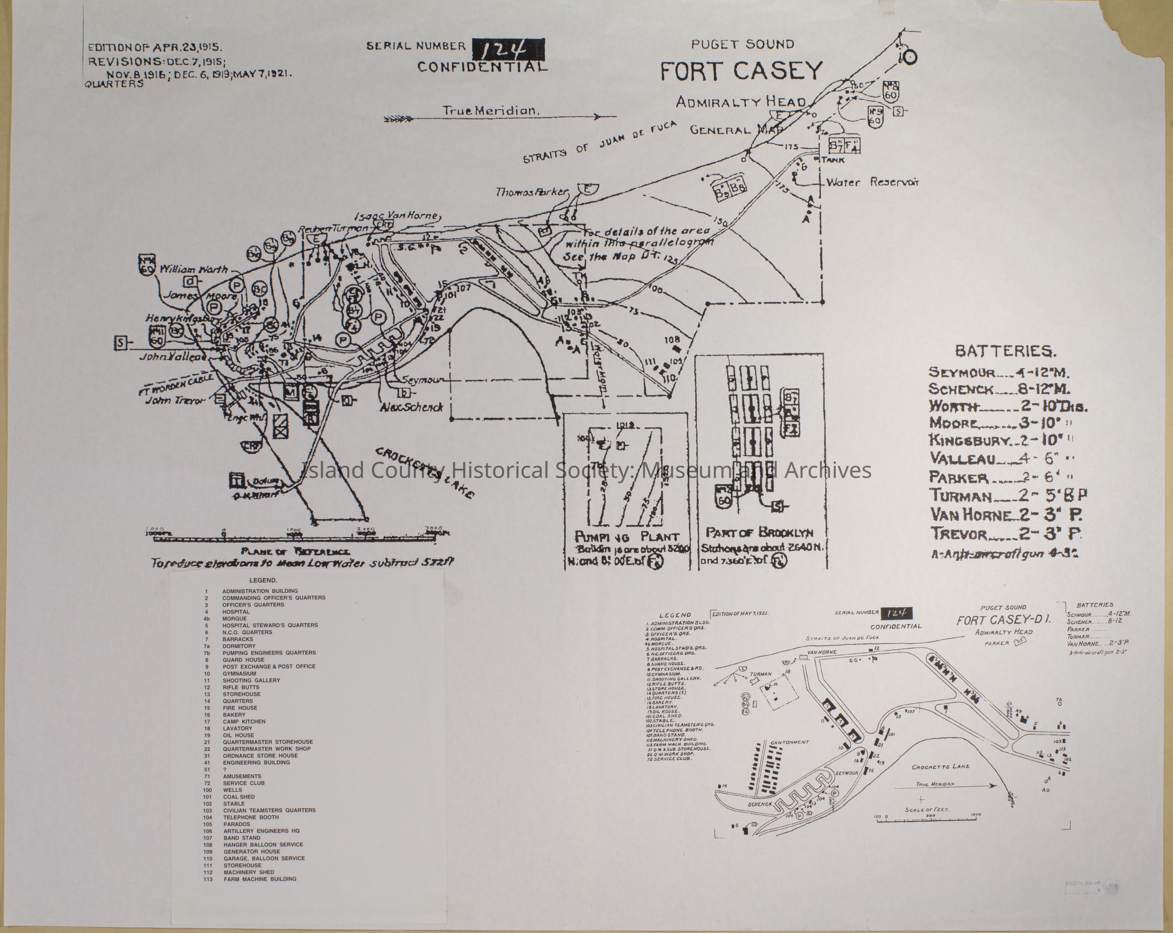 Fort Casey, Admiralty Head, General Map, shows gun batteries; May 1921