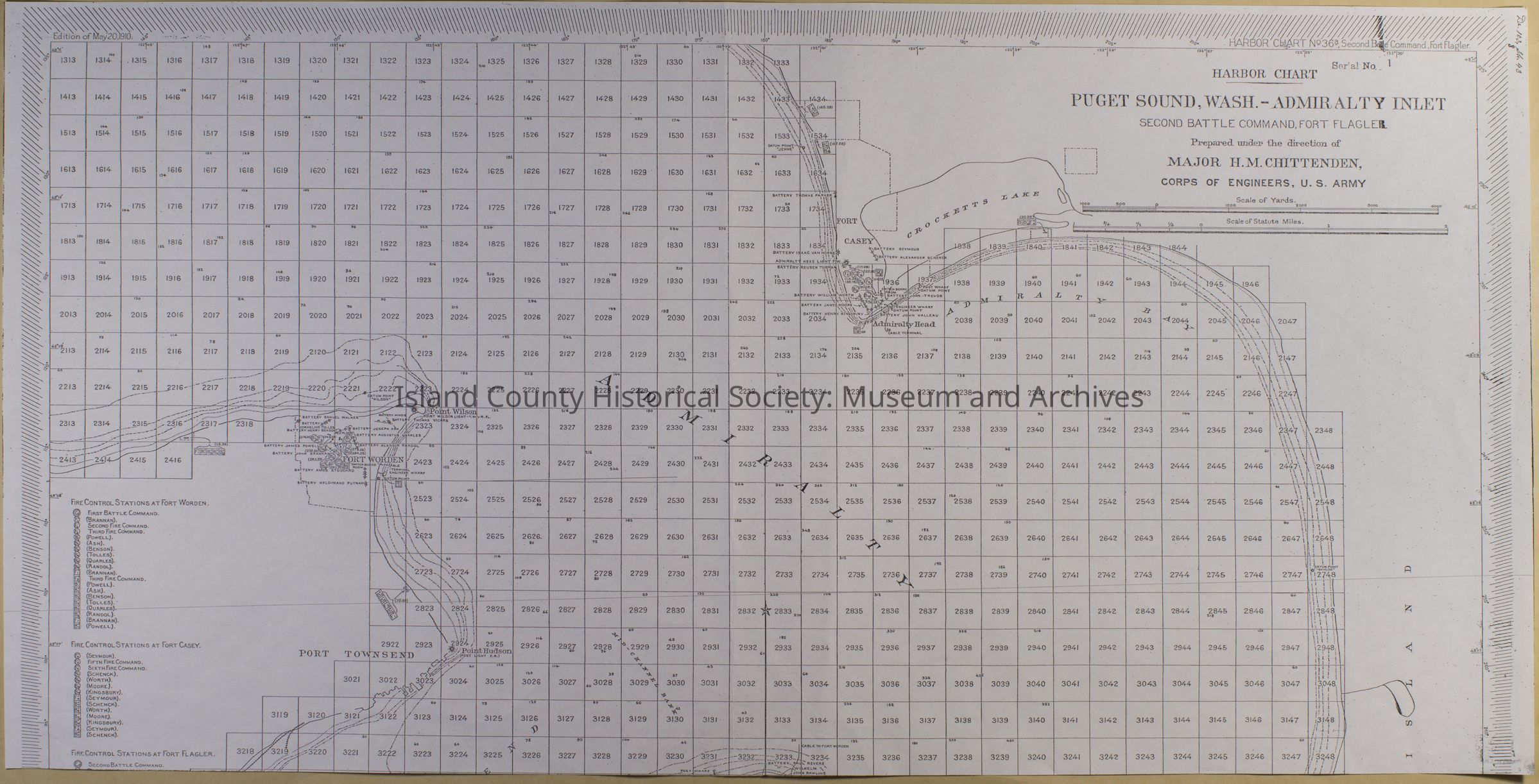 Harbor Chart; Puget Sound, Wash., Admiralty Inlet; Second Battle Command, Fort Flagler; May 20,1910 - Top of map