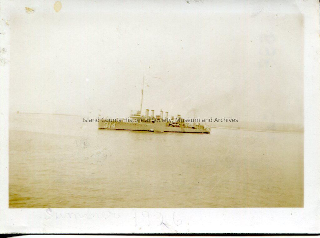 A photo of a ship in the water. The back of the photo says, "Destroyer USS Yarborough. In service 1920-1930". On the bottom of the front - very faint - summer 1926.