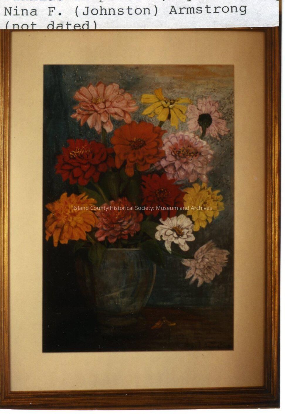 Zinnia's in Pastels by Nina F (Johnston) Amrstrong. Picture of the painting. Not dated (painting and the picture of the painting)